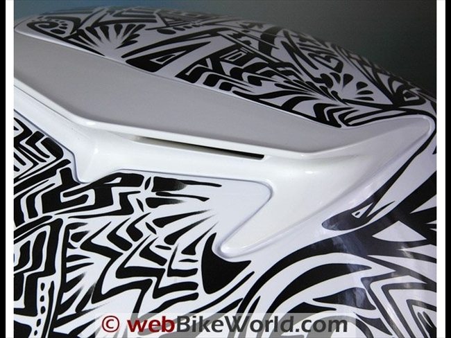 The version shown here has white colored plastic used in the chin vent, rear vents and other fittings, while a Cerwinske carbon fiber version is also available, with black colored fittings.