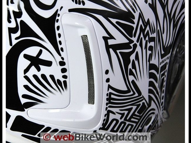 We gave it the webBikeWorld “Eye Port Gasket Water Torture Test” and it passed with flying colors. The water is quickly channeled out the sides and down off the helmet, so no problems at all with leaking here.