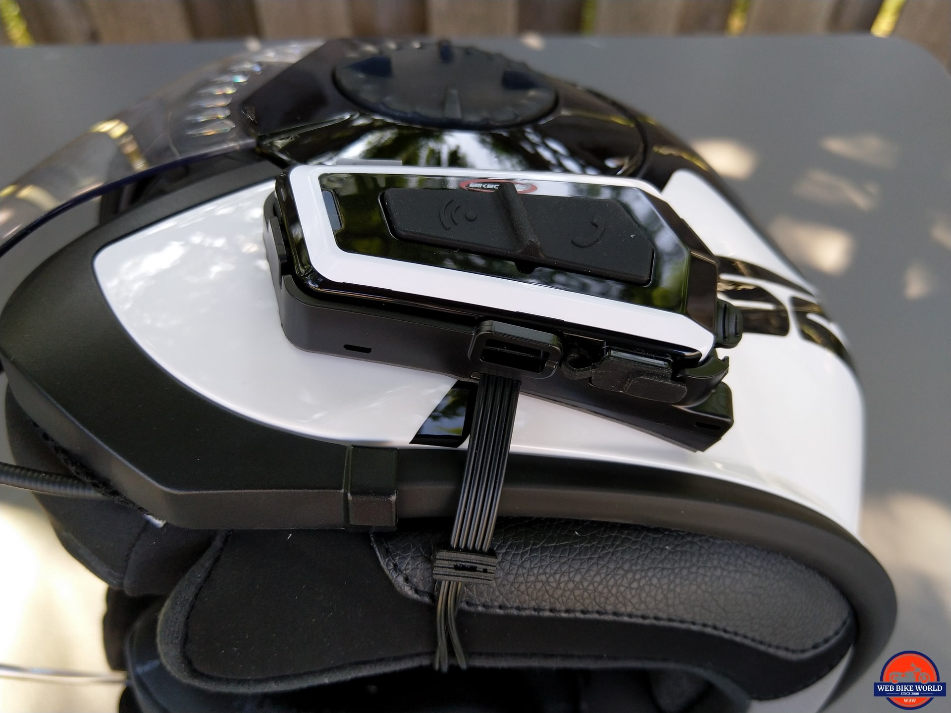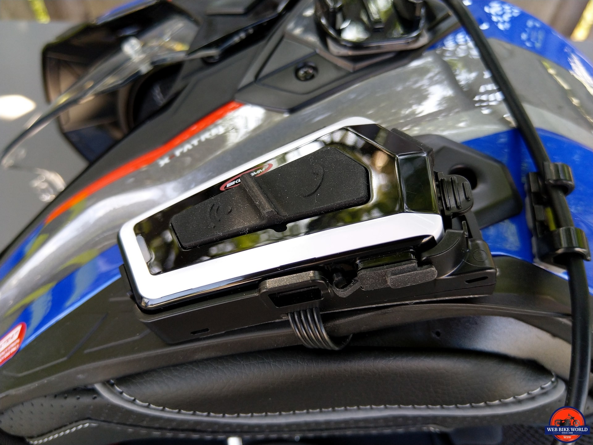 Once a placement was decided upon, the holder is secured in place using its adhesive backing. The white face of the BK-T1 goes well with the white of the helmet – more than a few compliments were heard about the look of the combination.