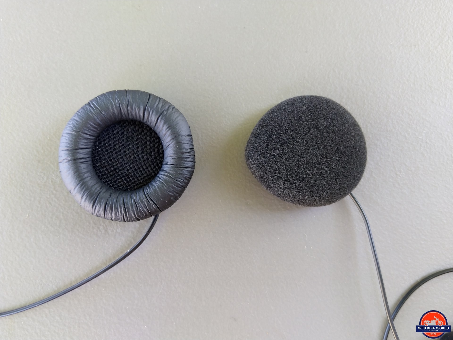 The speakers in the thick padded covers are about ~20mm or 0.78in thick, whereas the speakers in the thin foam speaker covers are ~14mm or 0.55in thick. This quarter-inch or so is very noticeable regarding helmet interior clearances vis-à-vis the ears (seen below).