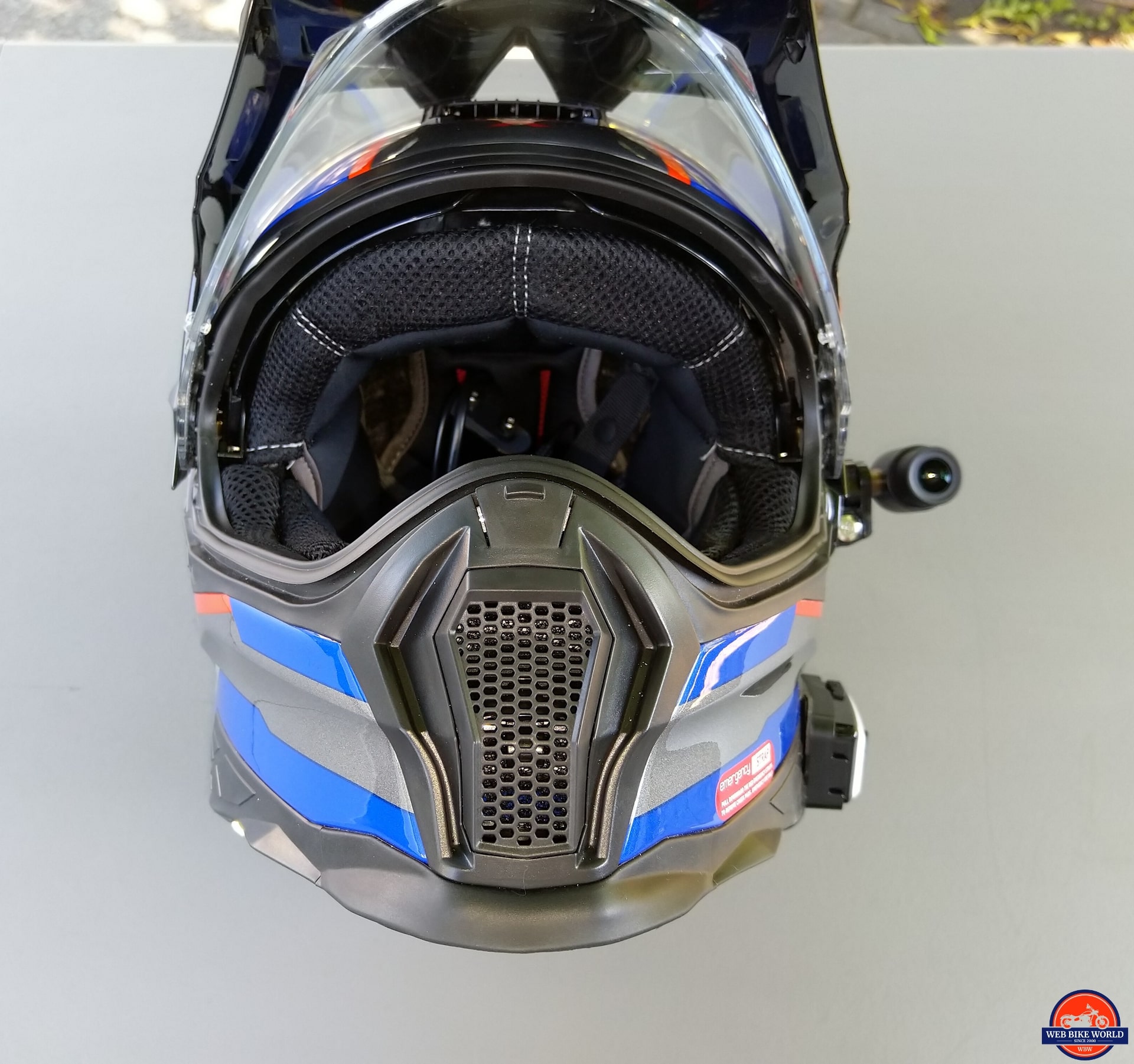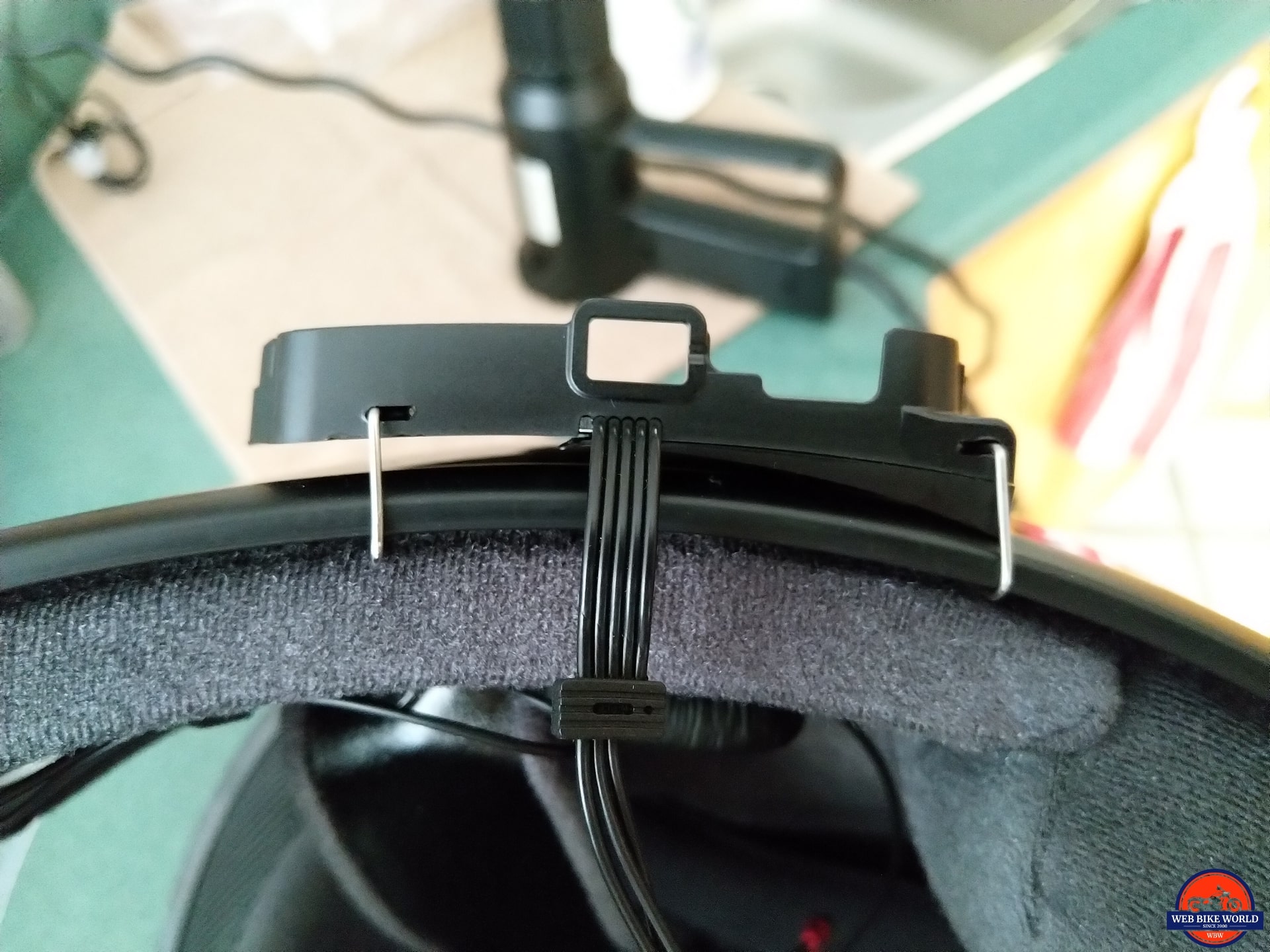 This wire mount was also tried on the NEXX X-Patrol with the same verdict. As such, the protective cover is peeled off the adhesive backing on the mounting plate for direct mounting to the outer shell of the helmet.