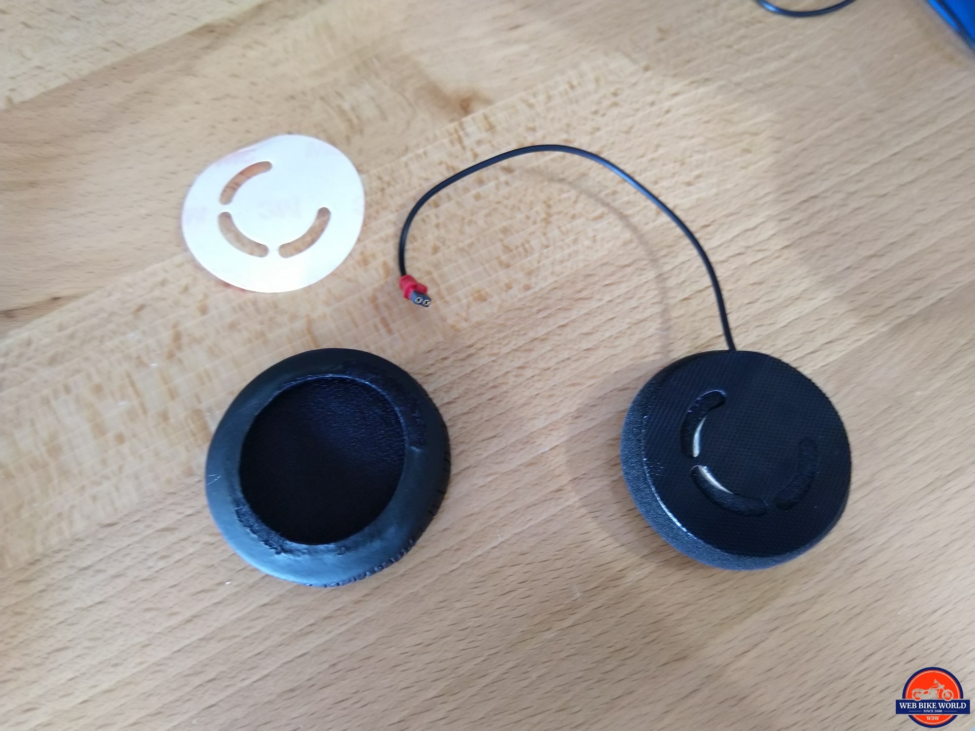 Along with the thin foam slip-on covers, are new adhesive backing rings that serve double duty in securing the thick or thin pads to the back of the speaker while providing the ‘hook’ for the round ‘loop’ pads that get mounted into the helmet for securing the speaker in place.