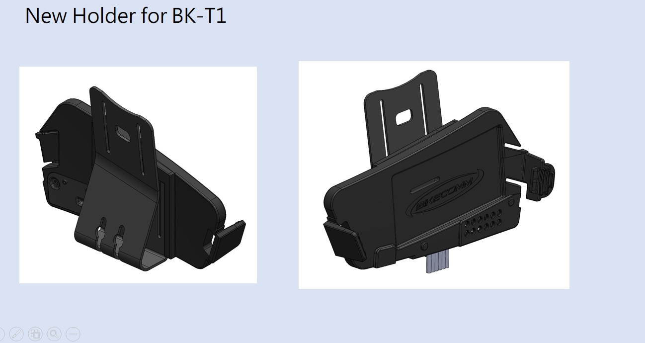 Includes the BK-T1 BT (with FM) module, the enhanced holder with the newly designed clamp mount, integrated harness with the hard-wired left speaker/microphone, and detachable right speaker. The enhanced holder also works with the included adhesive-based base mount allowing the user to choose between the two mounting options.