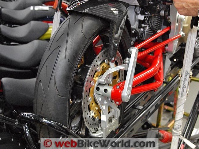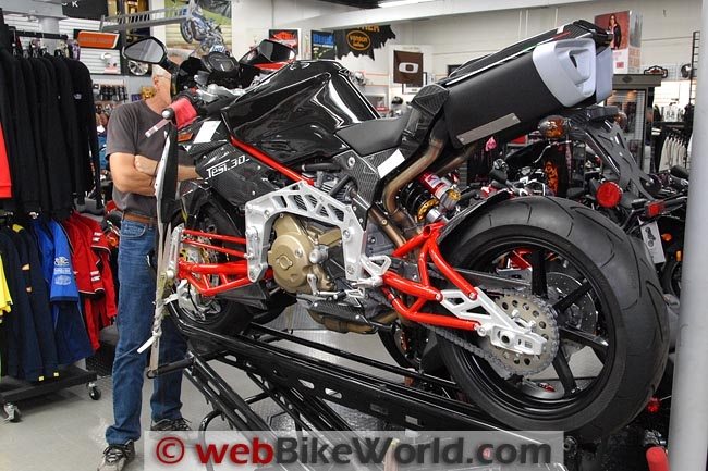 See below for new photos of a Bimoto Tesi 3D, taken atBattley Cycles in Gaithersburg, Maryland in October of 2011 during the Motus MST preview (report).