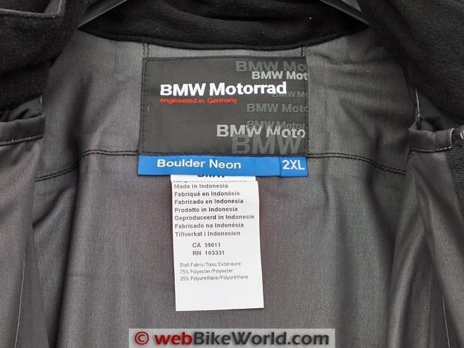 The BMW Boulder Neon jacket is available in six sizes: S, M, L, XL, 2XL and 3XL. I purchased a 2XL as it is a perfect fit for the upper part of my 188 cm (6 ft. 2in.) plus frame, including long arms