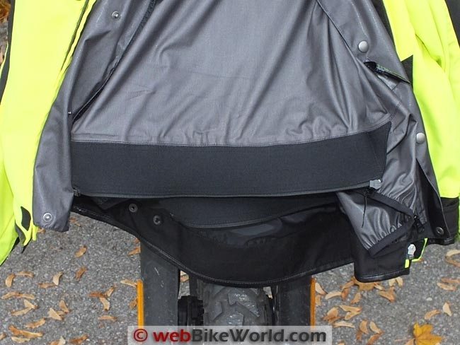 There are two 40 cm (15.7 inch) connection zippers for pants as well, one on the liner and one on the outer shell, with both attached by heavy elastic material for stretch and comfort when in use.