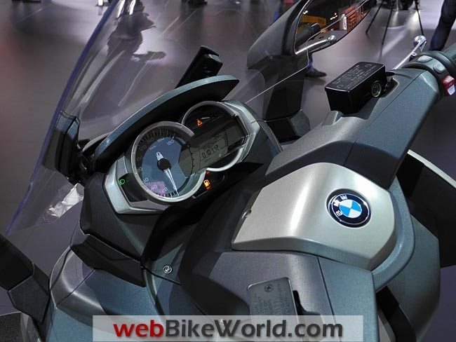 The instrument cluster of the C 600 Sport and C 650 GT presents a large, easily readable LCD display with integrated engine speed readout and an analogue speedometer.