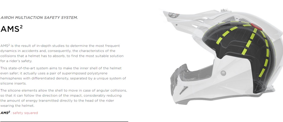 On the Airoh website, you’ll learn about some interesting crash technology incorporated in the Commander helmet they call the Airoh Multi-action Safety System or AMS2.
