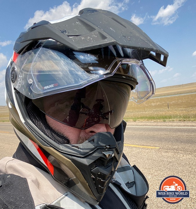The view out of the eyeport of the GS Pure is as good as any other adventure helmet I’ve worn. I’m 100% satisfied with it and it’s sized large enough to allow goggles to sit inside, should you choose to remove the visor and run that way for extended time off-road.