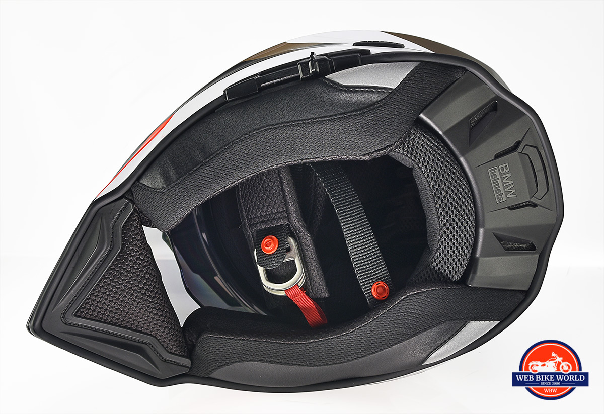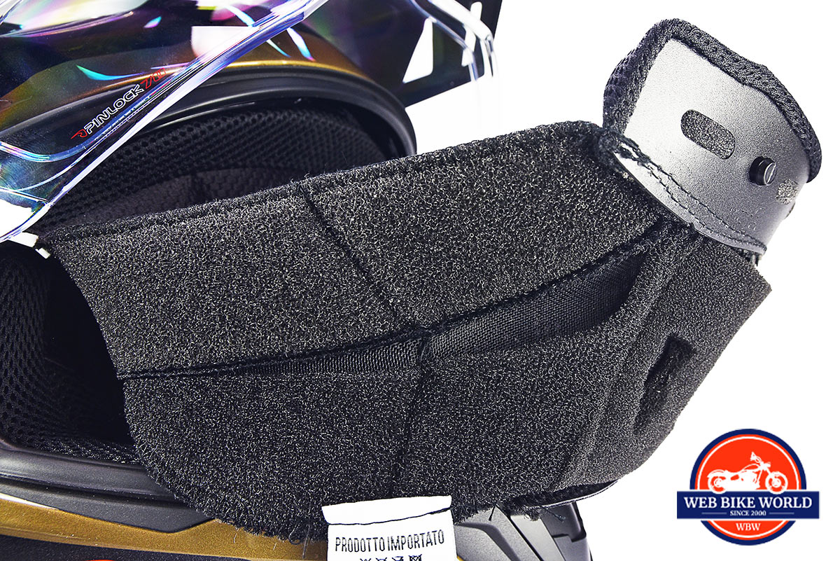 I like the way the cushioning material fully separates my skin from the harsh chin strap itself at all times without coming out of place the way it does on many other helmets I’ve tested. Even some high-end Shoei helmets I’ve worn have this problem.