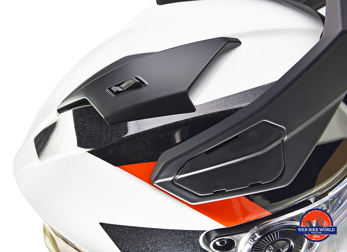 There are two small ON/OFF switches located up on either side of the crown area of the helmet that create a Venturi effect to suck out hot air and moisture, but it doesn’t work as well as I would like it to.