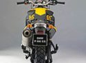 The sports silencer in titanium and carbon made by Akrapovic fits without problems onto the original manifold system, which is fitted as standard with a regulated catalytic converter. It is a slip-on silencer fixed in place with springs. Using this silencer can save around 2 kg in weight compared with the standard system.