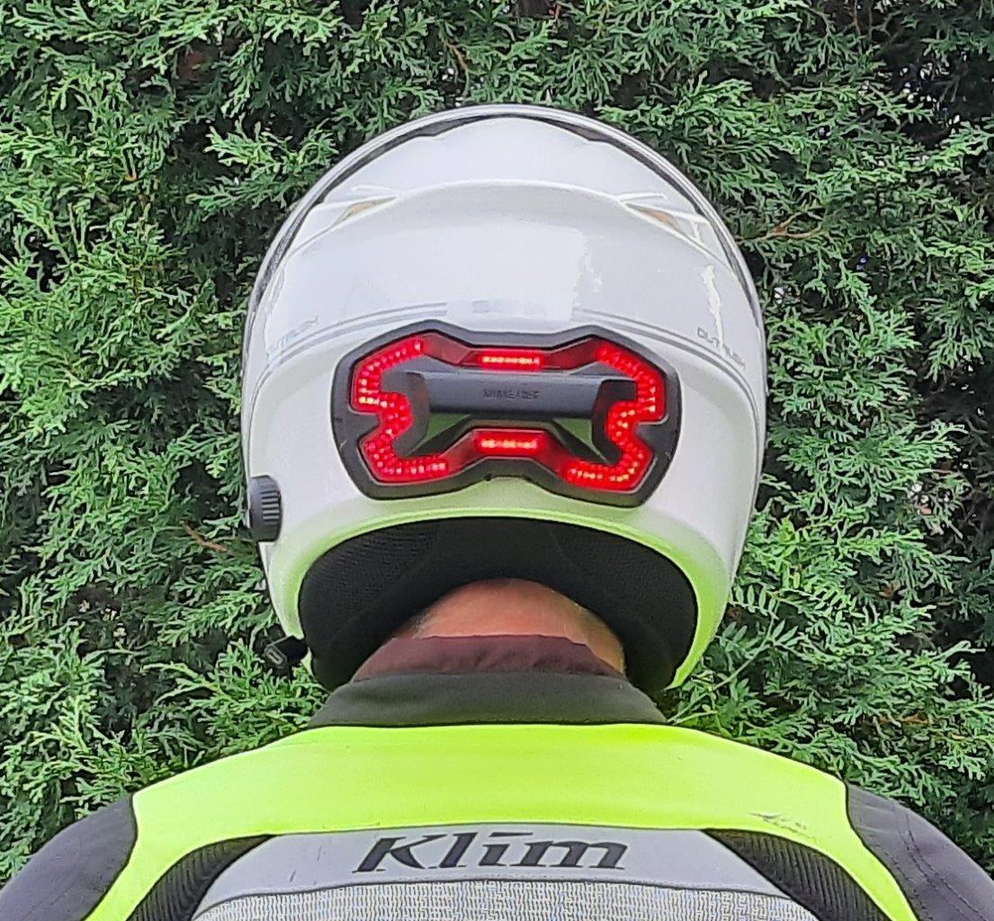 And if in doubt regarding effective placement, it helps to have a second person provide support and objective input; with the user on the motorcycle, helmet worn, and the Brake Free turned on. Check the output in all modes and move the head forward sharply to trigger Brake mode; the visual results are eye-opening.