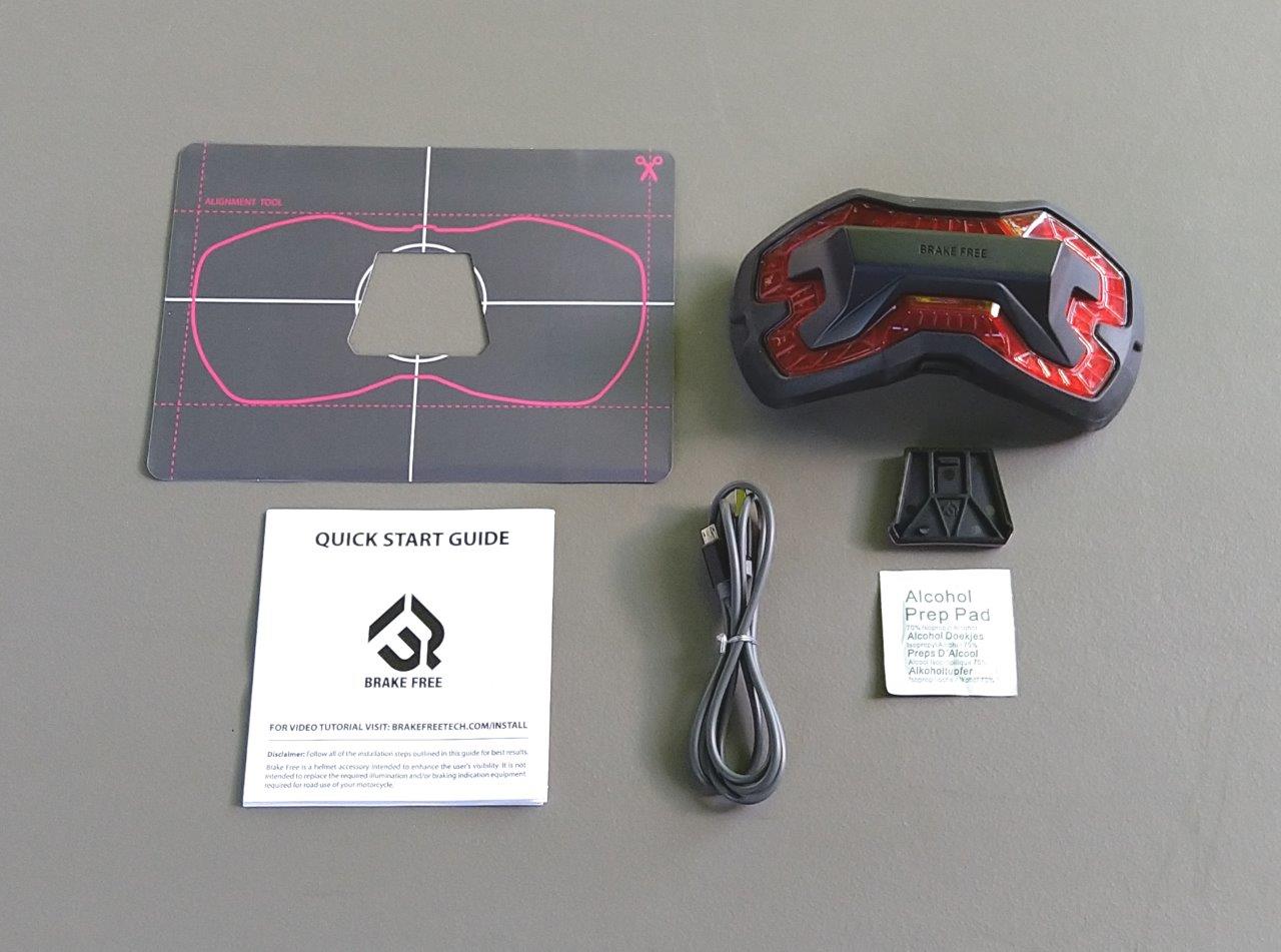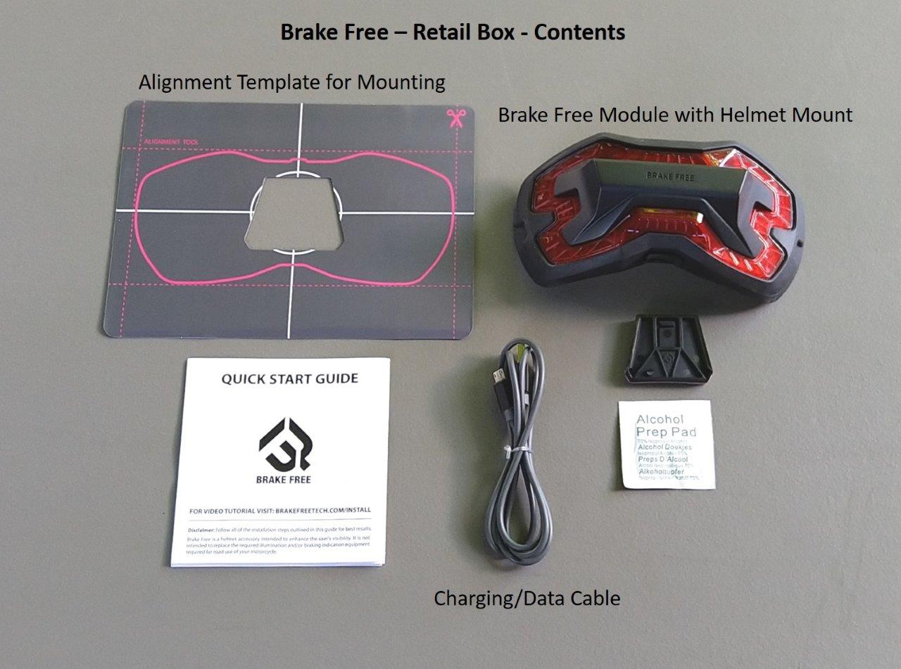 Packed securely inside were: the Brake Free module, one Brake Free adhesive mount; a micro-USB charging cable; Quick Start Guide; Installation template (great inclusion); and an alcohol wipe (just make sure the alcohol-based wipe can be safely used on the helmet).