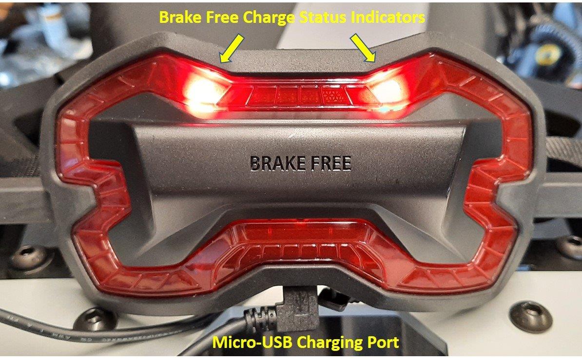 As the Brake Free is a self-contained device, its power source is a rechargeable battery that only requires a DC 5V source, at 1A maximum, to recharge. A fully drained battery may take up to three hours to recharge and less time if in a partially depleted condition.