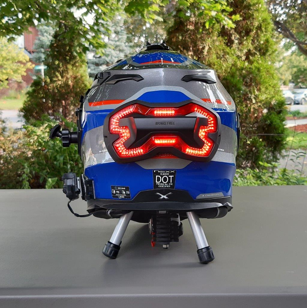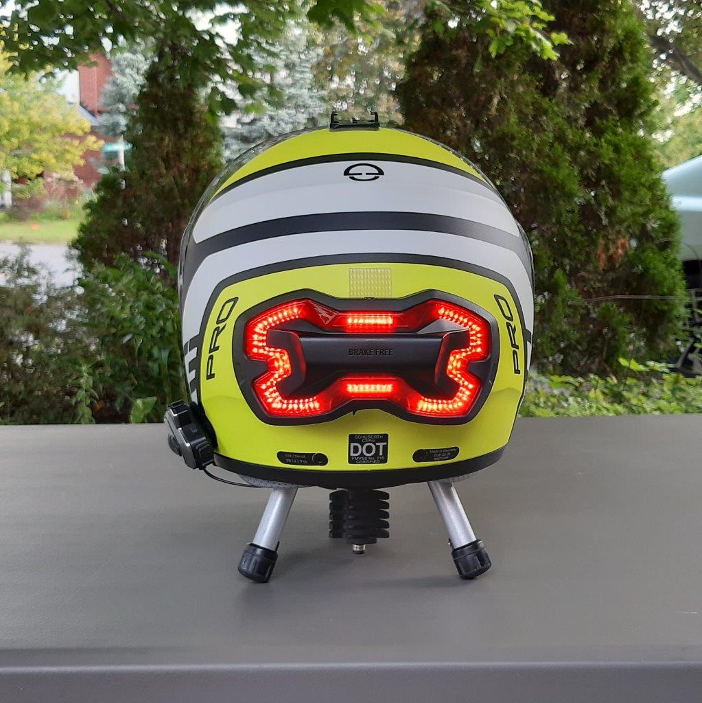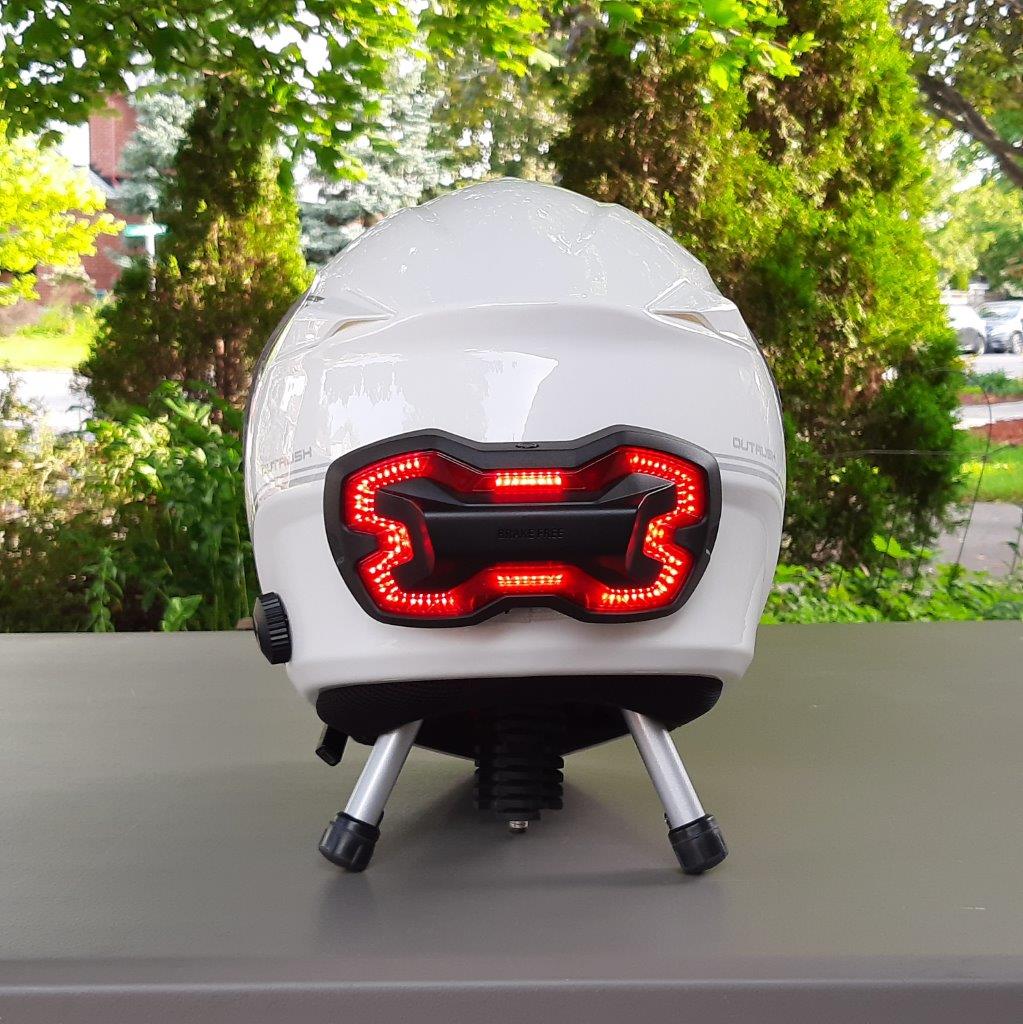 The Brake Free is doing exactly what it is designed to do – provide an instant safety benefit or tool, mounted higher up on the rider to increase the rider/motorcycle profile, alert surrounding traffic regarding the profile, and allow the rider and motorcycle to establish a better presence.