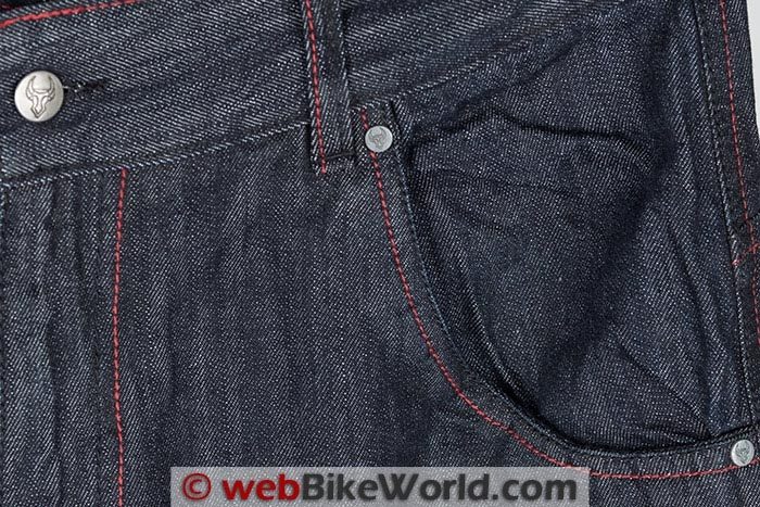 Where the Sidewinder jeans use red stitching on the rear pockets, the Federal Red jeans have — you guessed it — red for nearly all the exterior stitching.