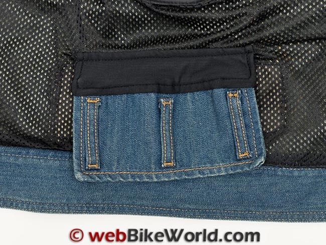 On the Roadster jacket there are three denim loops attached to a section of denim that is attached to the liner via strip of what appears to be Spandex.