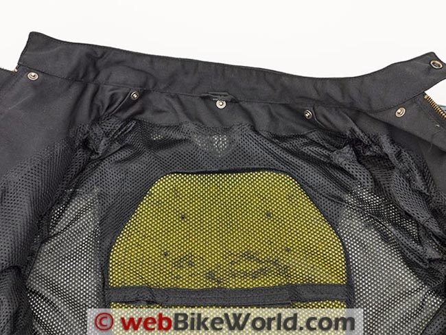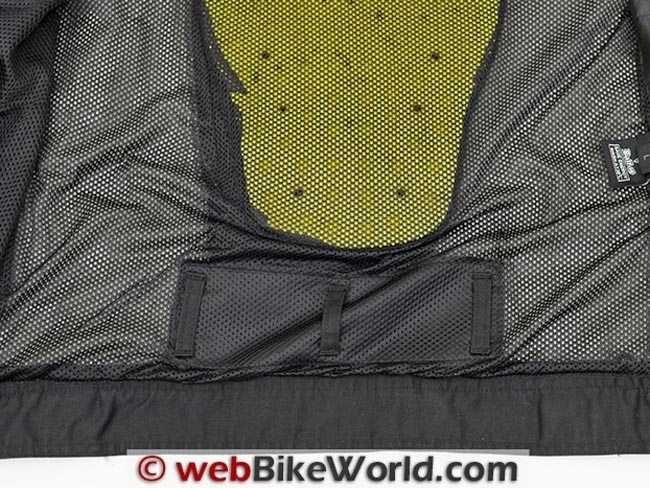 This filler-type pad was included in the Carbon jacket as well but it appears even less substantial that the one in the Roadster. Personally, I would replace either of these with more substantial Covec back protection shown above, which are available as optional accessories.