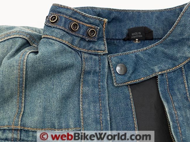 At the neck on both jackets is a snap closure with three positions of adjustment. I like the ample adjustment in this area as it can accommodate not only various neck sizes but allows for layering clothes such as turtlenecks or using neck gaiters for colder weather riding.