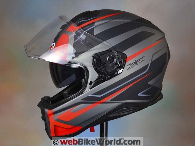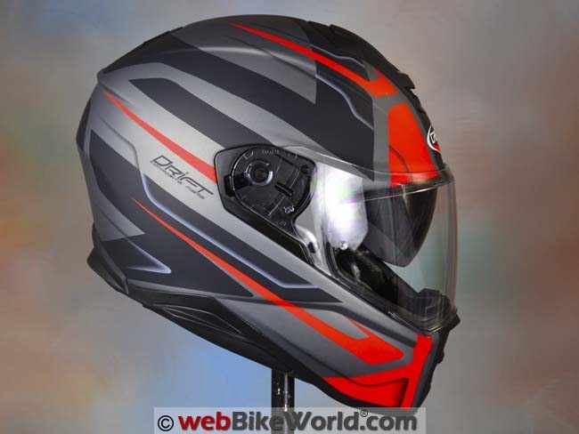 The Drift is a street/sport or “high-tech” touring helmet with a composite carbon, Kevlar and fiberglass shell.