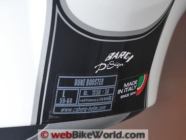 The Duke shown here is in the “Booster” graphics, which add about 40 Euros to the cost for a total of €239.90, still a pretty good deal for a made-in-Italy helmet.