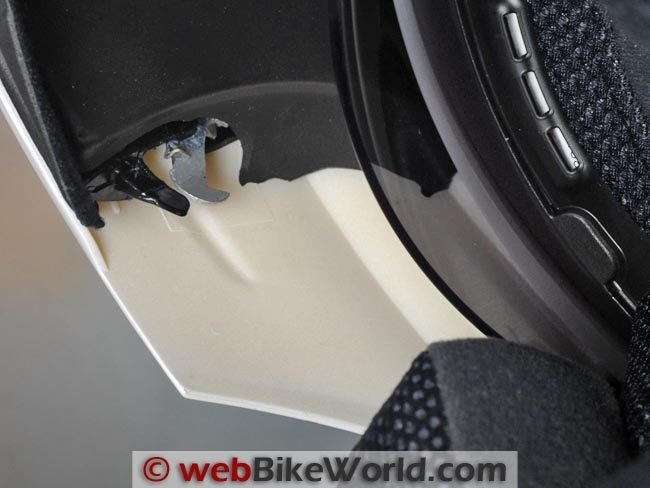 Also, you may notice the notched stops in the sun visor slider assembly at the top of the helmet, located in front of the slider for the internal sun visor.