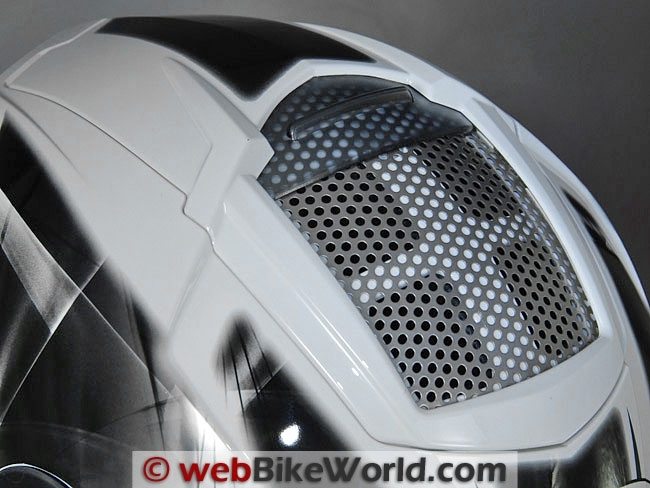 The chin vent uses a similar perforated screen, also made from stainless steel. Behind the screen is the vent opening, which operates via a small rocker switch under the chin bar.