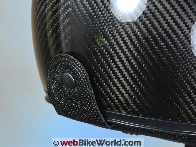 The bottom of the helmet is some type of faux leather that’s a pretty close approximation — although Caberg mentions the word “leather” but we’re not sure where or if it’s really used.