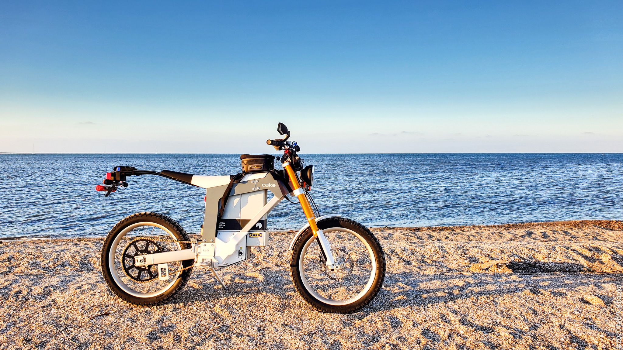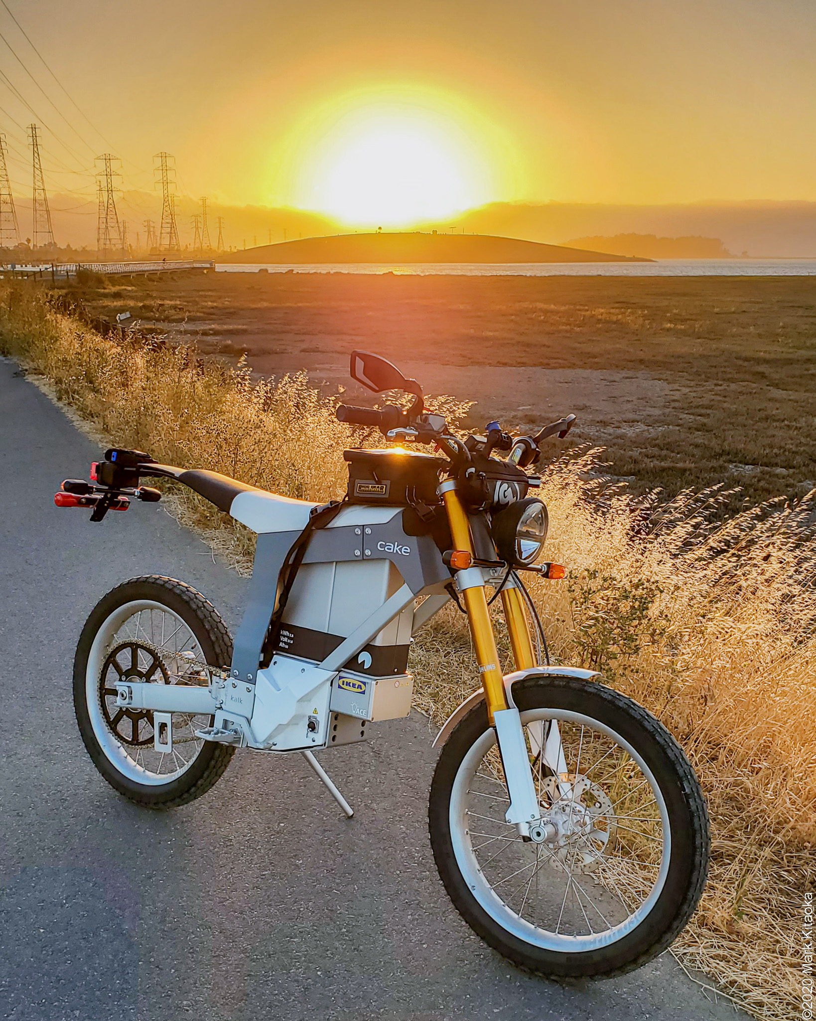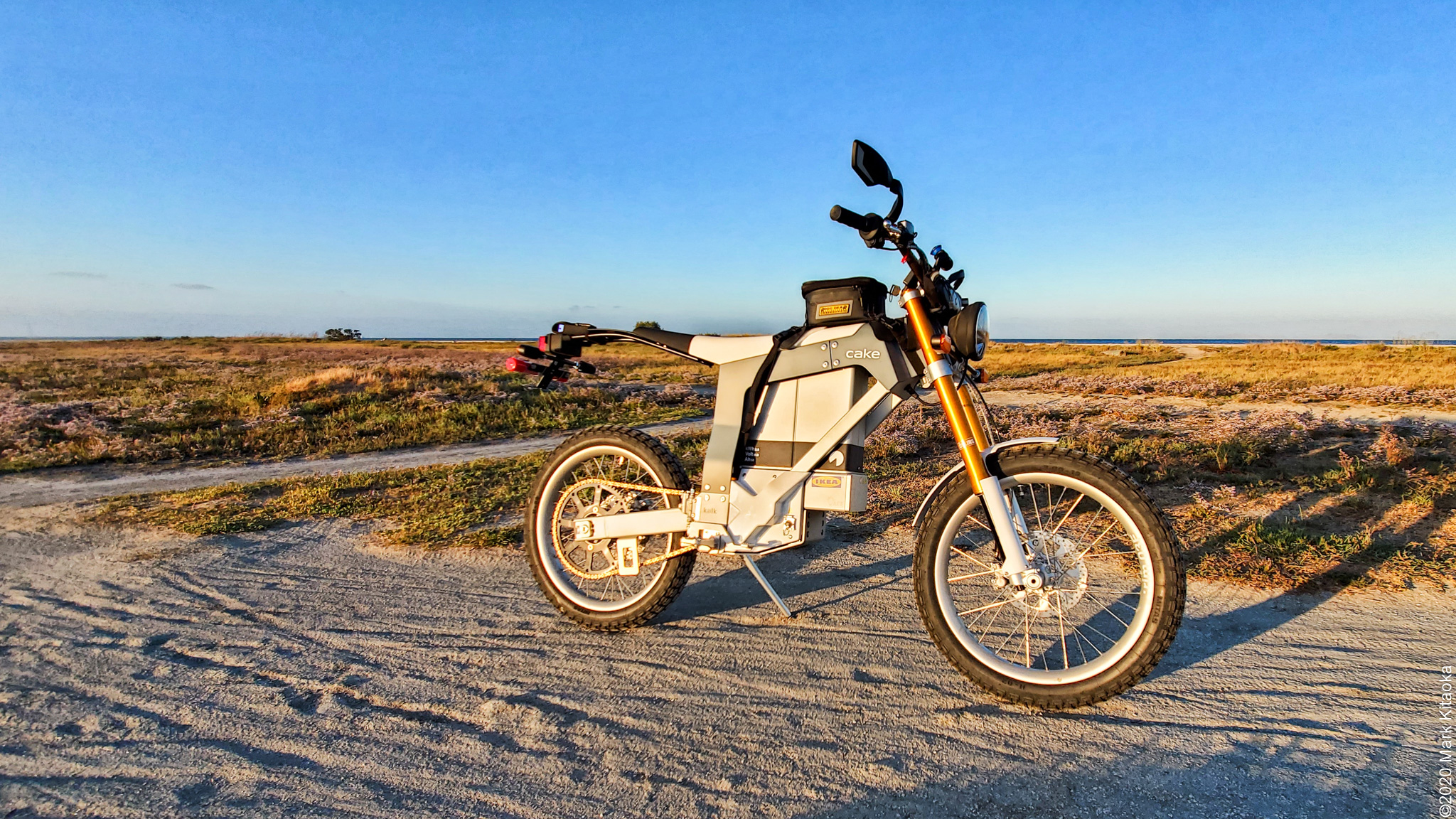 I was intrigued at the CAKE line of EVs for quite some time. But never having seen one and at a $14,000 price point, I put them out of my mind. In my entire motorcycle lifetime, I always regretted not purchasing a dual sport motorcycle. The Suzuki DZR 400 or a street converted Honda 250 were my choices back in the day. My bikes were either full motocross or later, road racers. For me, the thought of riding to an off-road area and getting into the dirt would be heaven. No truck or trailer needed, no ramps, no tie downs – just riding to an unexplored off-road spot to ride or camp.
