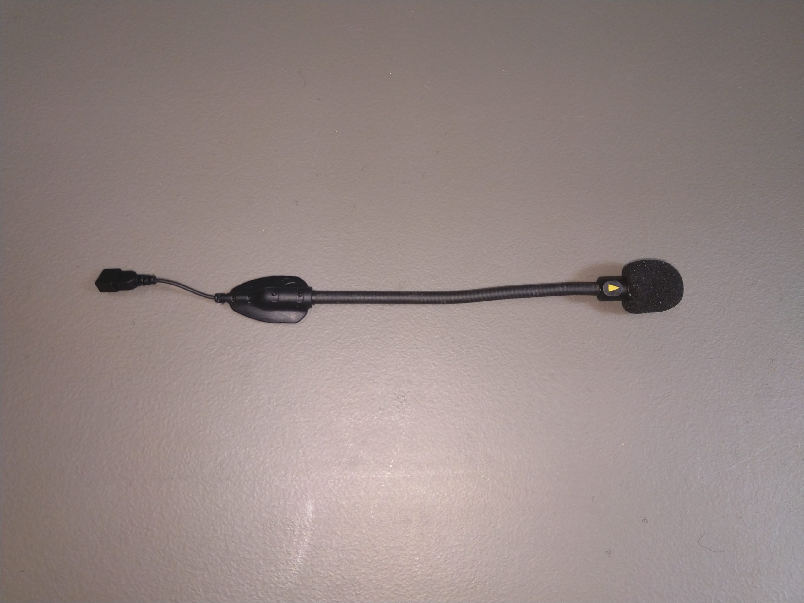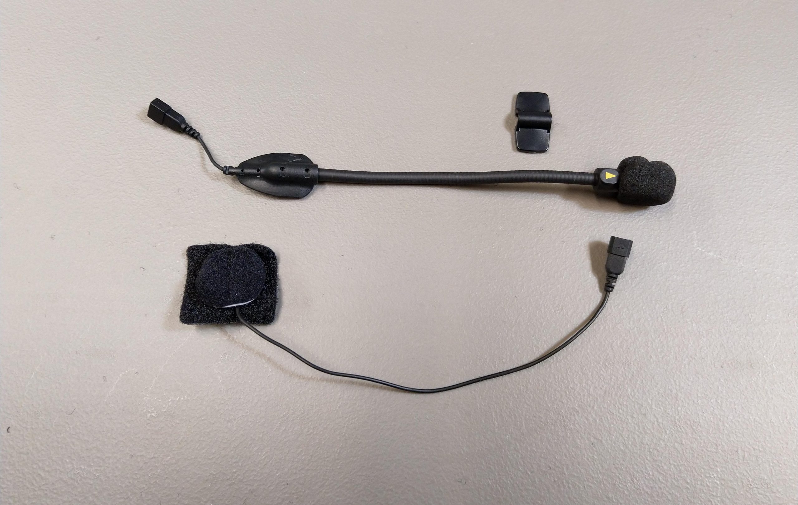 The Arai Corsair and Shoei QWEST full-face helmets utilize the stock steel-spring clamp mount plates and corded (thin-wire) microphones.