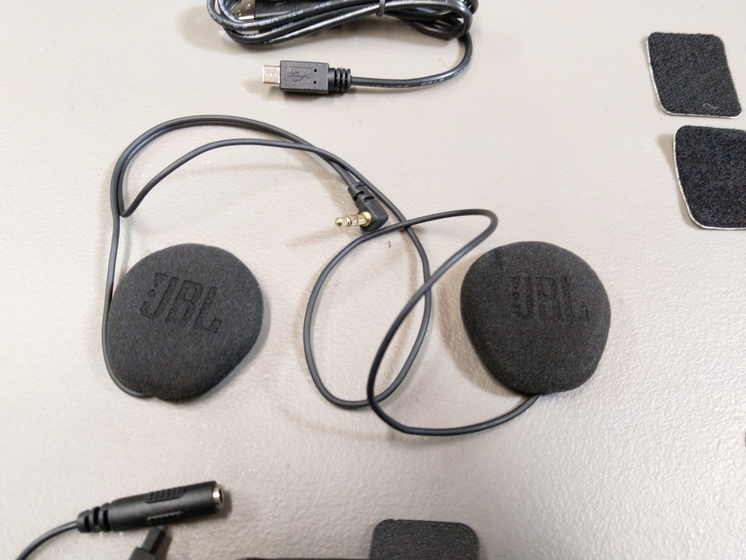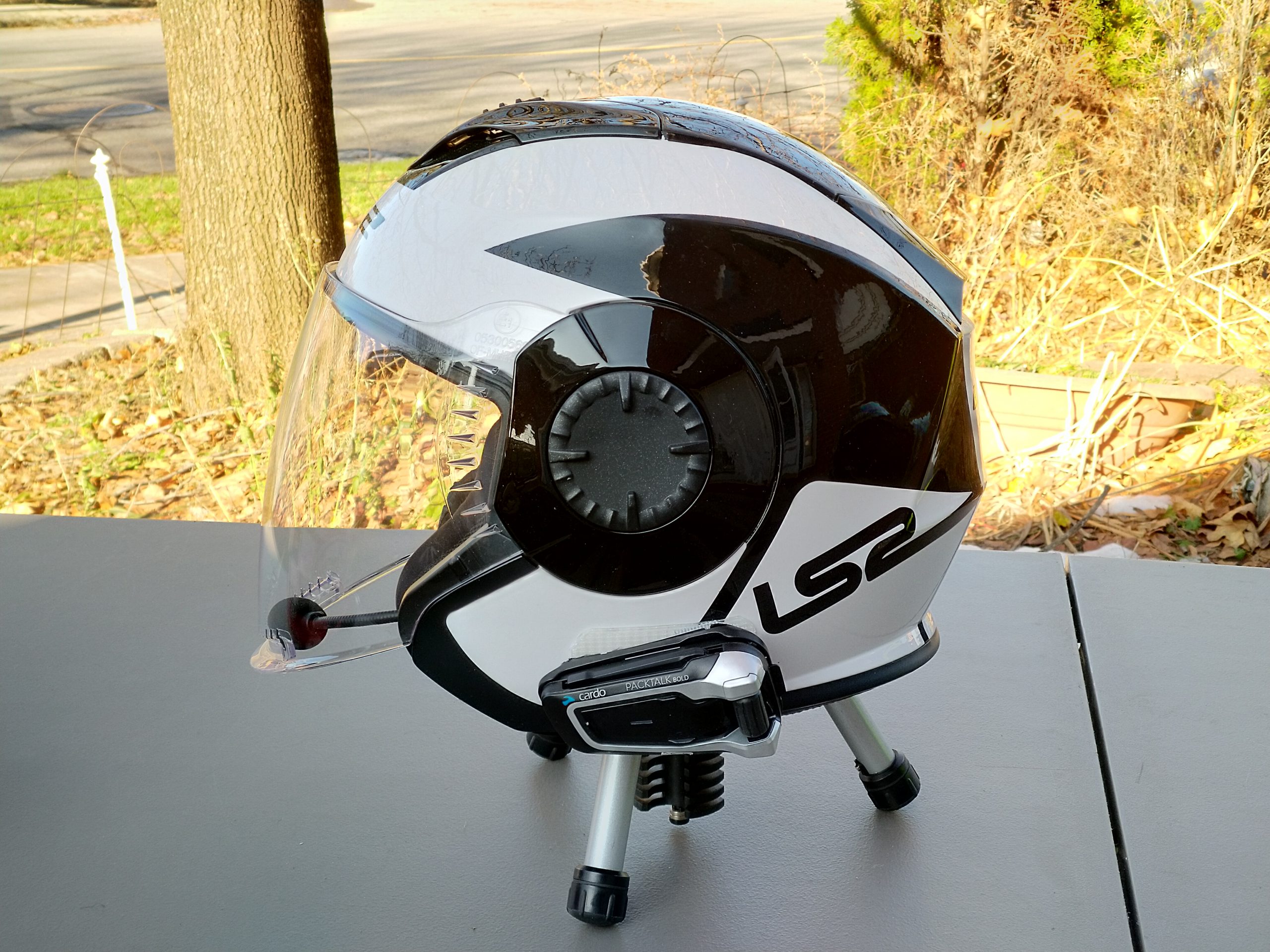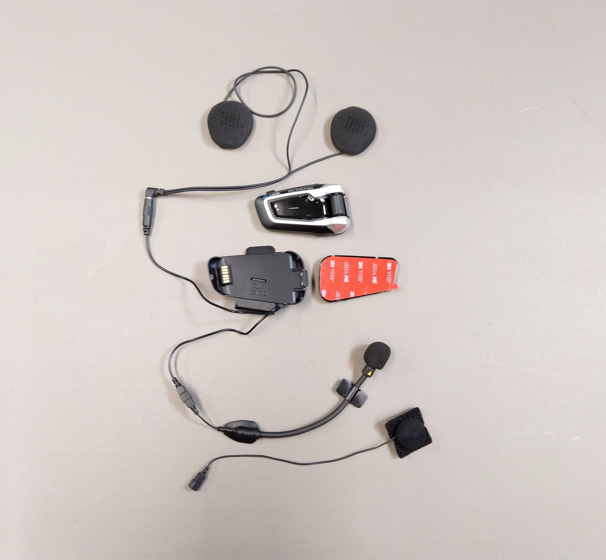 Along with the four PACKTALK BOLD with Sound by JBL systems, the accessory Cardo Audio Kit with the 45mm Sound by JBL speakers (that were also used with one of the 2019 PT BOLD systems) were installed into an LS2 three-quarter helmet, along with one of the original PACKTALK systems. Five is a good round number for testing.