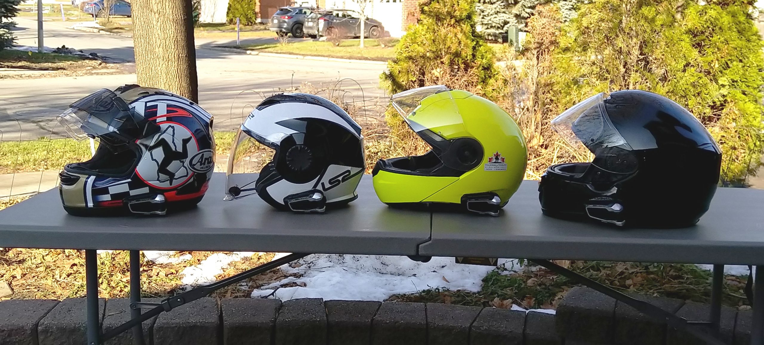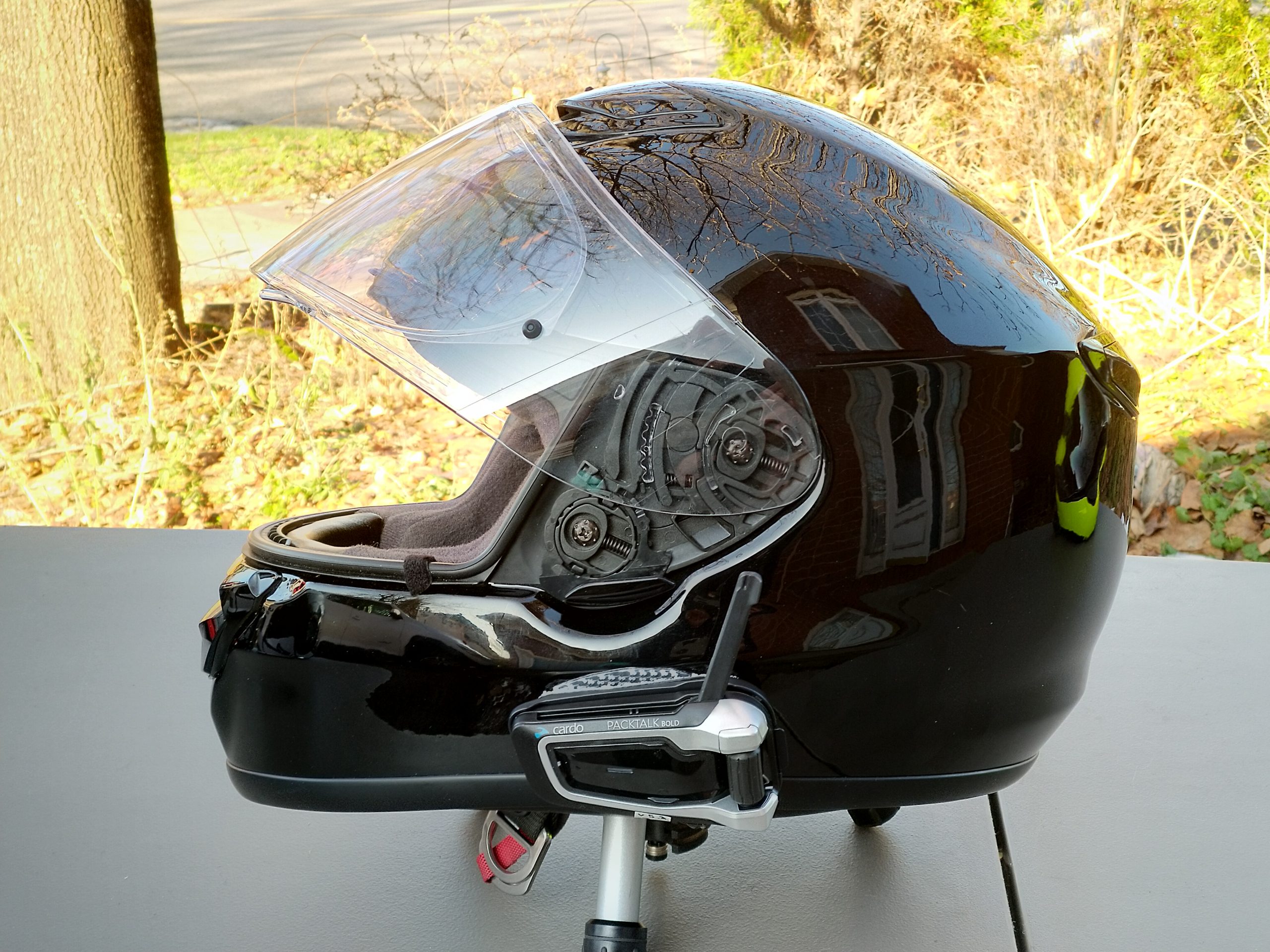 The preferred approach for testing is to use a variety of helmets including full-face, modular and three-quarter styles, which sometimes required multiple installations of a system between helmets… but with two DUO kits provided, a multi-helmet baseline is facilitated – very good.