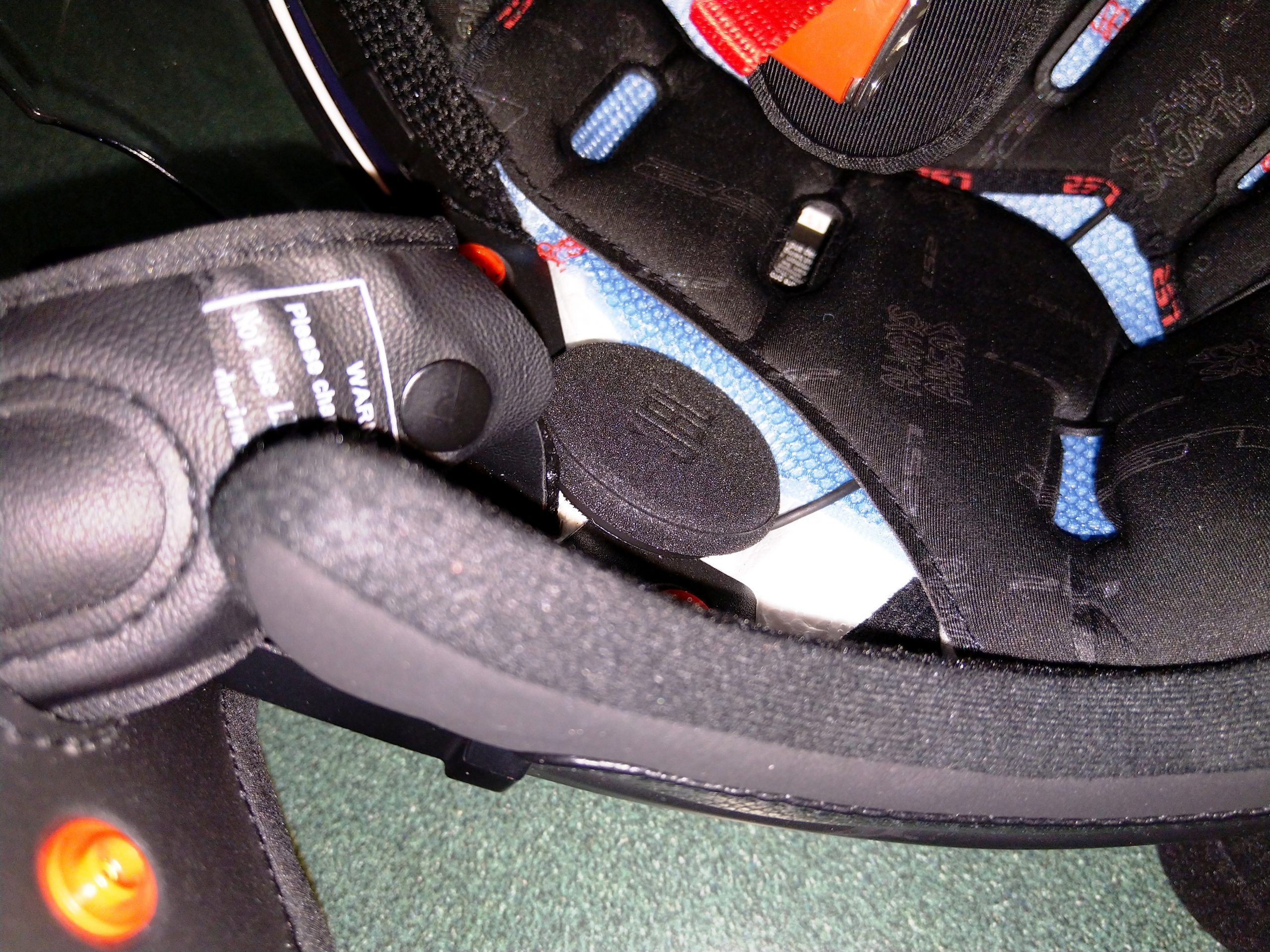 Solution 2 – Another solution used is found on the LS2 Verso Mobile helmet that hosted the Cardo Audio Kit 45mm speakers. With the helmet featuring a previously installed section of 3M Dual Lock to facilitate BT system changes, a spare PACKTALK mounting plate prepared with 3M Dual Lock and fitted onto the base piece was drawn into action – done.