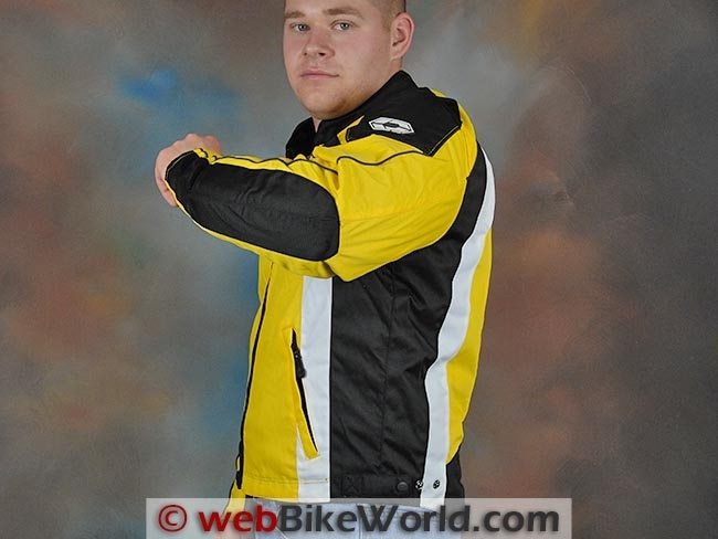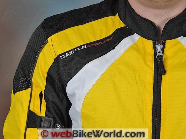 The Castle Slate jacket is inexpensive but it has all the basics, including a Hitena nylon shell, a mid-weight removable liner and shoulder and elbow padding. The generic styling is fine at this price point and the jacket comes in several colors, including this vibrant yellow.