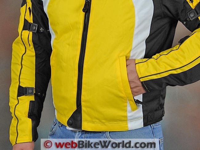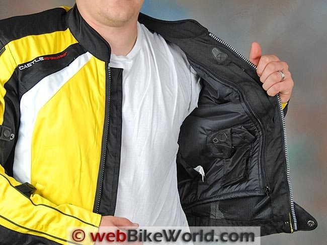 The inside of the both the right and the left placket also each have a handy vertical zippered pocket, which is a definite surprise and very welcome. Most motorcycle jackets have a single pocket inside the placket, but not on both sides.