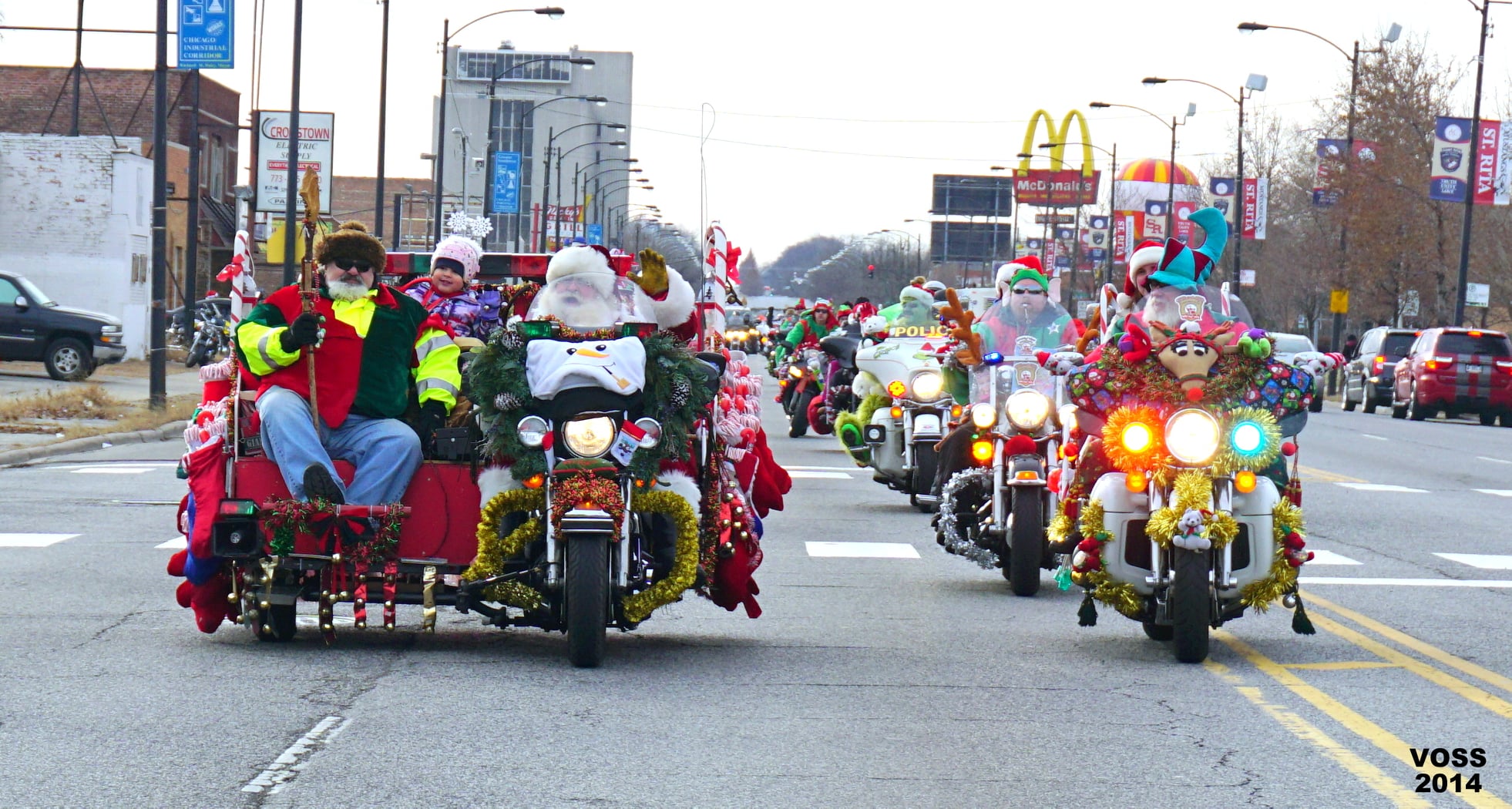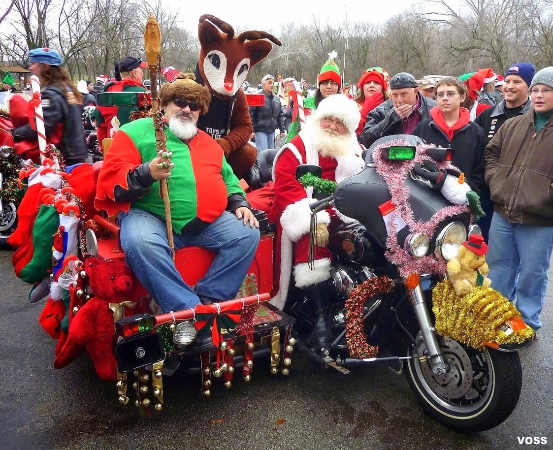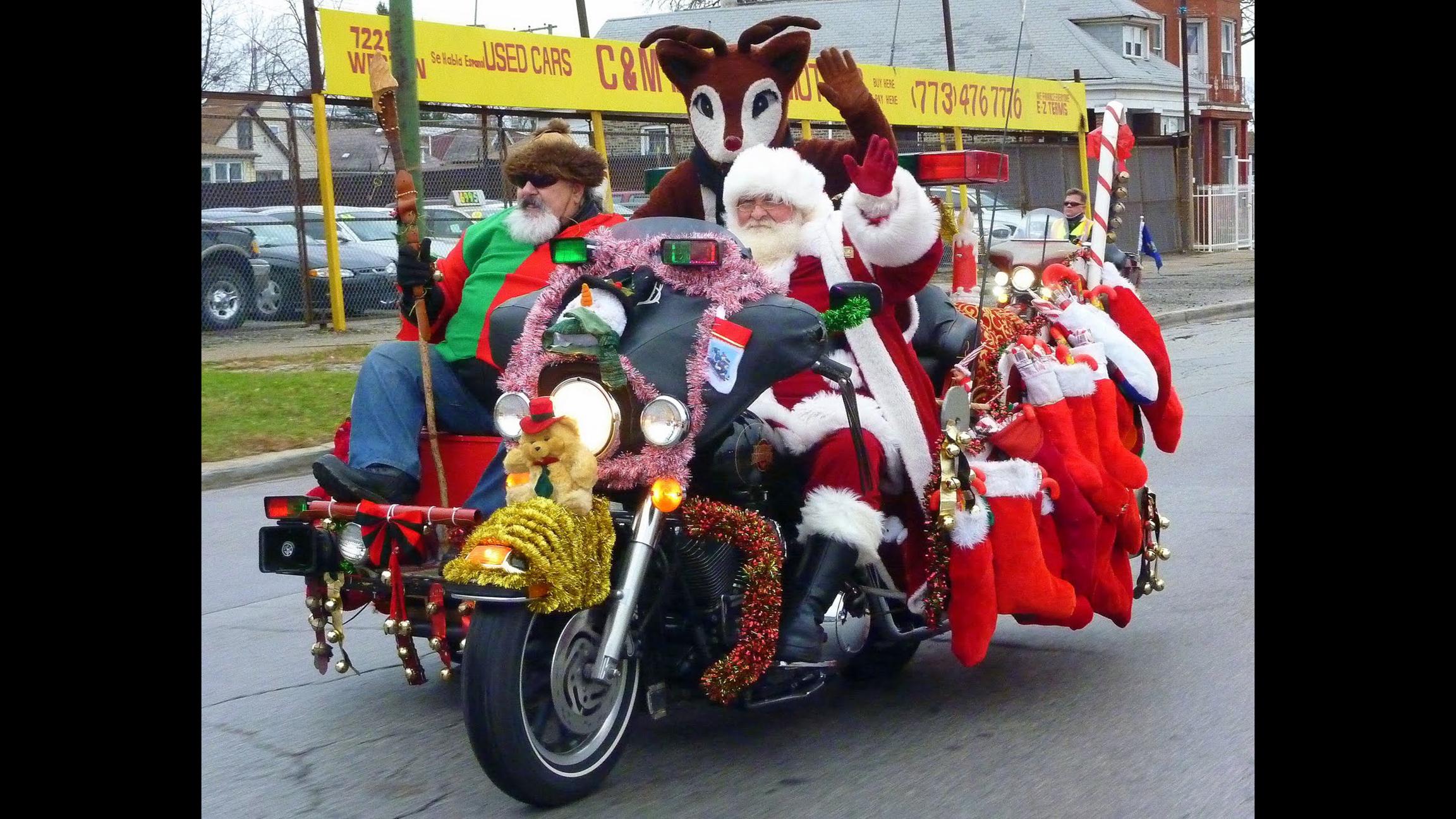 Care to learn what it’s all about? The report tells us that “thousands of bikers, decked in festive holiday gear and loaded with toys, are expected to gather at the traditional starting point in Dan Ryan Woods, 87th Street and Western Avenue.”