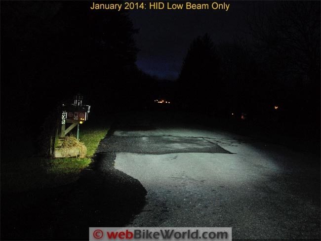 Here is an animated .gif illustrating the differences in the DR650’s HID headlight at low beam only, high beam only and then the high beam with the Erica lights at full power: