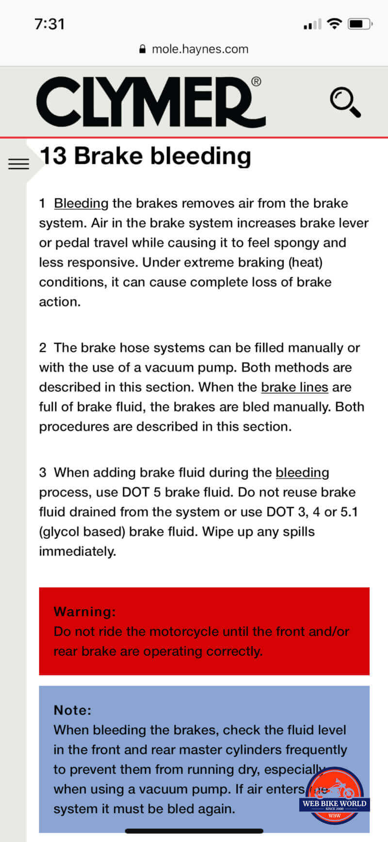 There are times Clymer will show you how to avoid needlessly buying special factory tooling and present a way to build your own or get by without it. In the brake bleeding section, they mention the MityVac bleeding tool which allows a single person to bleed the brake lines but also mention how to do it with a friend without the tool.