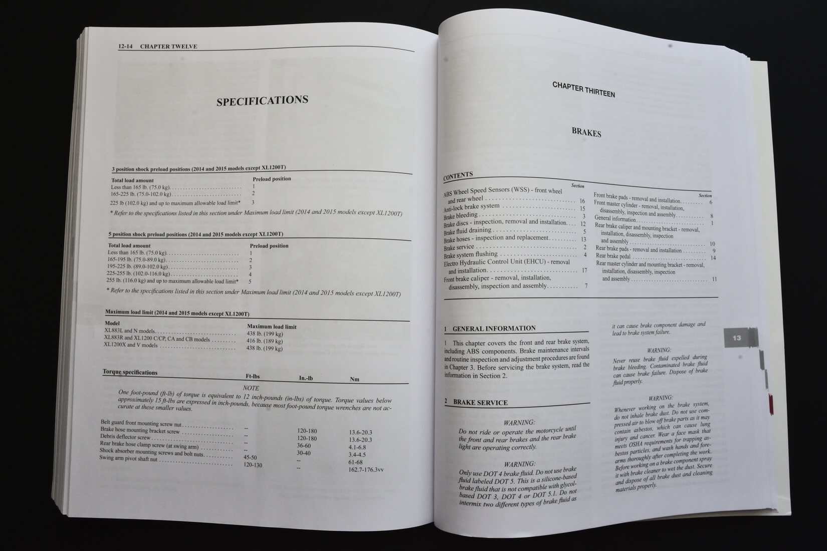This review is of the brand new book and online service manual (M256) for late model Harley Davidson XL Sportsters from 2014 to 2017 model years. Harley brought in a CANbus electrical system in 2014 on these bikes so having a good manual is pretty crucial in DIY work as a result.