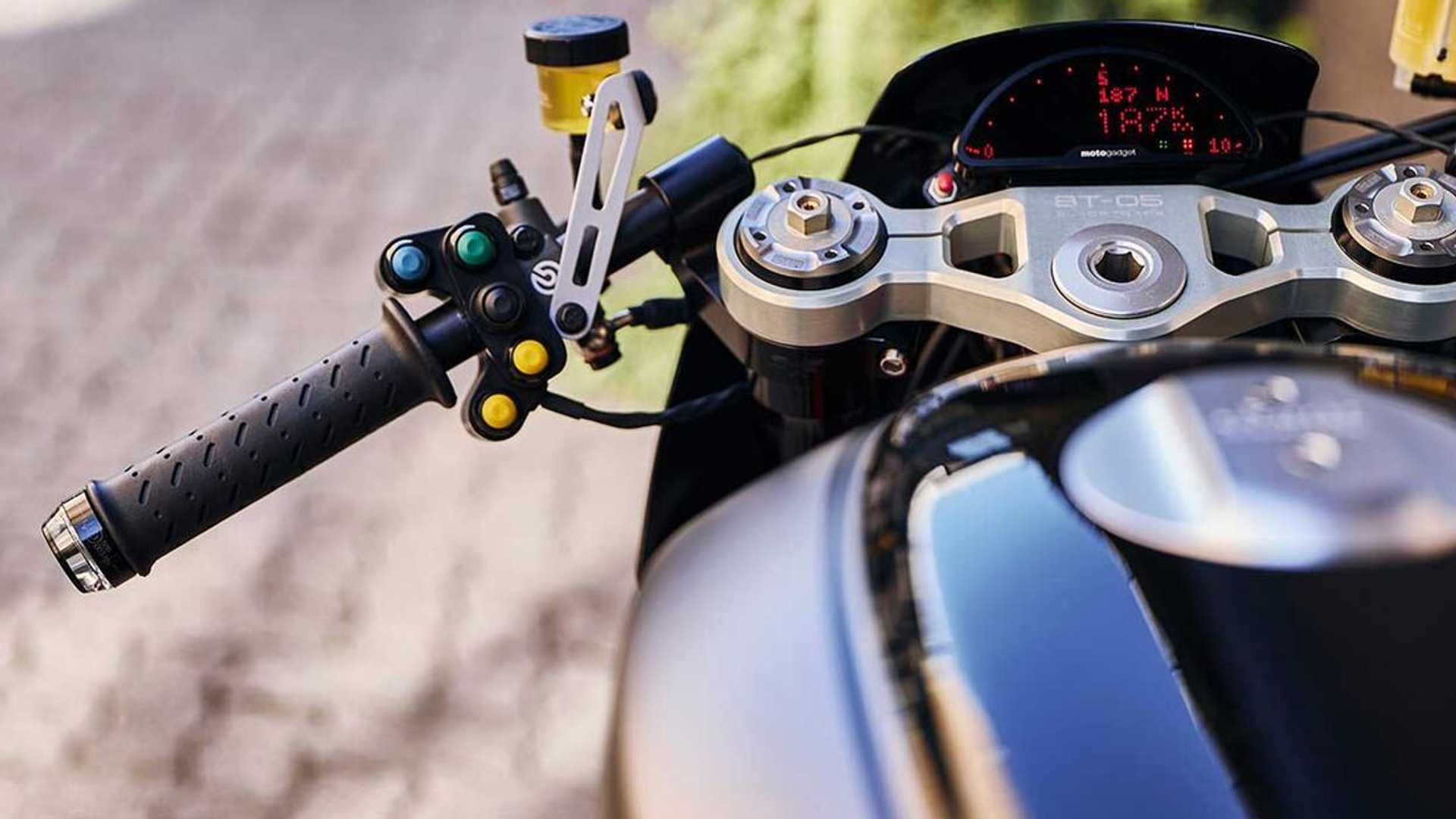 To finish everything off, Lakic gives us a Moto Guzzi 850 Le Mans-inspired wrap of carbon fiber and aluminum. He also chucks in “a new Motogadget Motoscope instrument panel, milled levers, race switches, and clip-ons.”