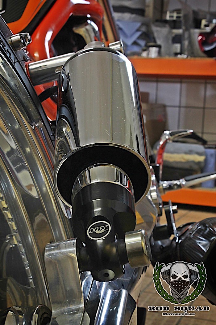 The report from AutoEvolution states that many of this bike’s parts came from other shops such as “Roland Sands (riser, milled to fit a motogadget speedometer), Avon (tires), Arnott (the air suspension), and another German custom shop, NLC.”