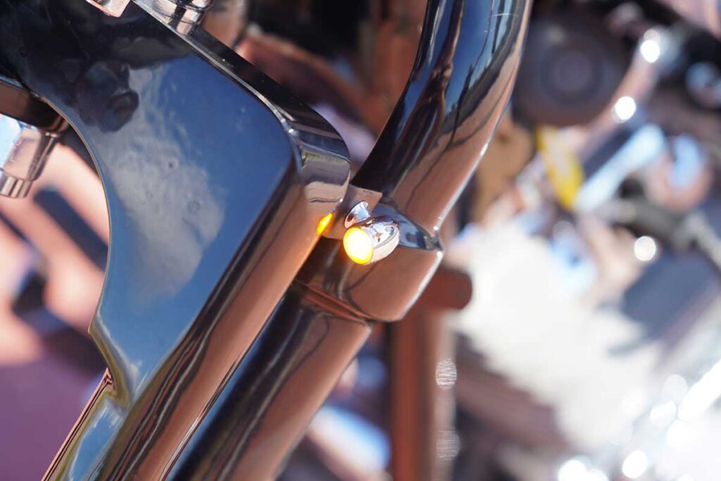 LDK also chucked in Kellerman atto micro indicators and a personalized 5.75” headlight, all accentuating the wealth of black and chrome with blue and white detailing on the fuel tank and the rear fender.