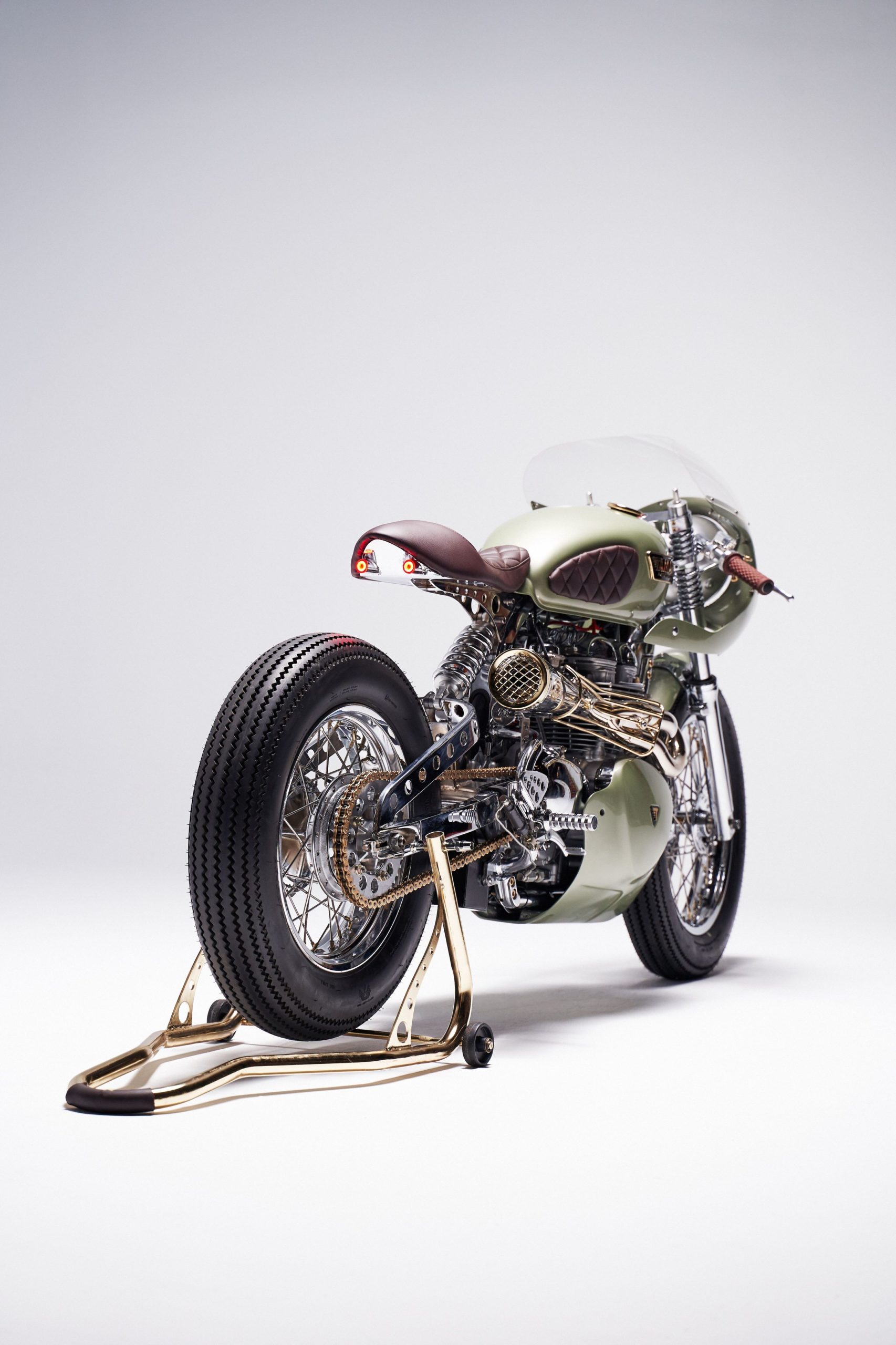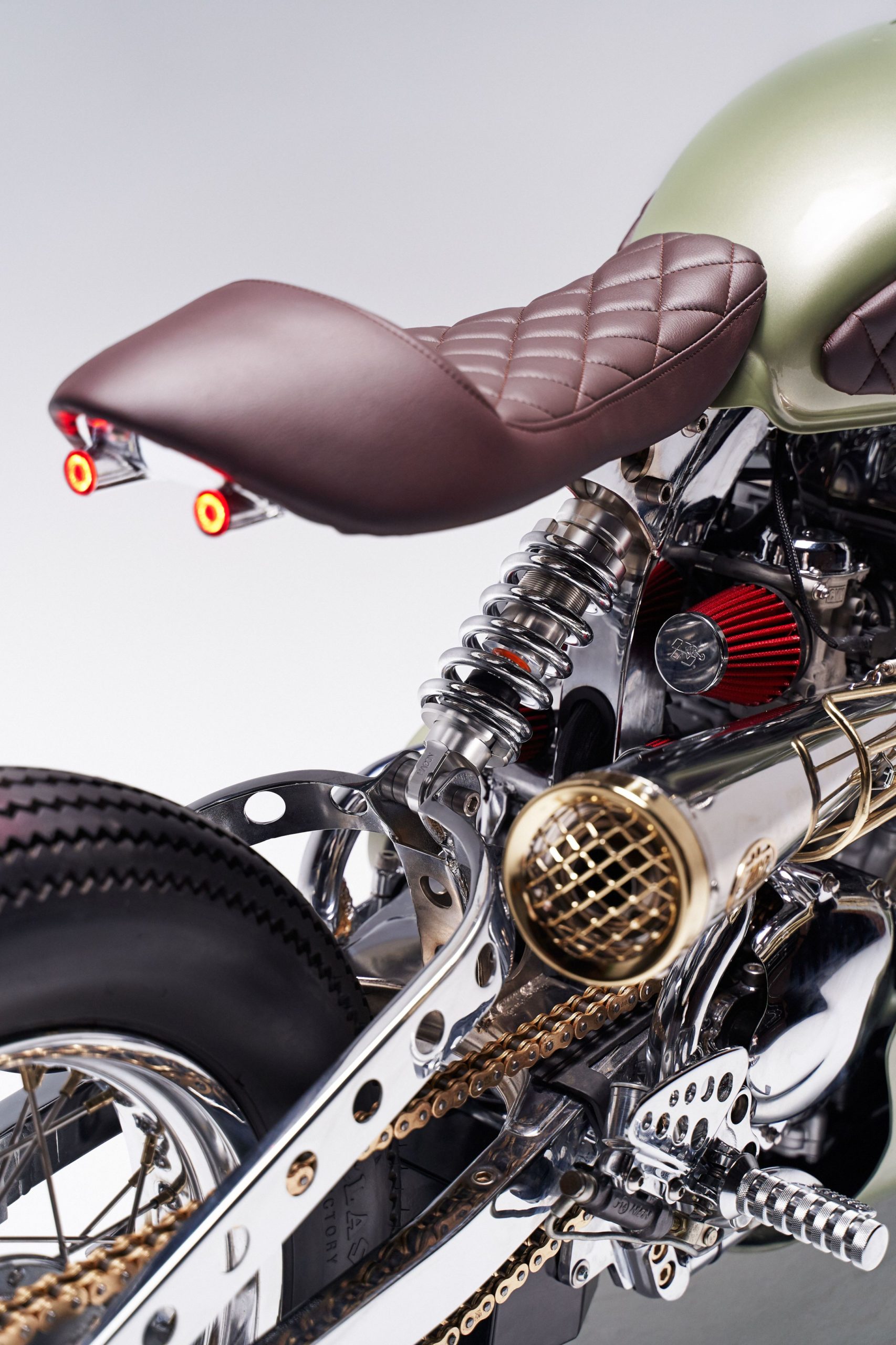 For this build, we’re told by the auction description that Jade (christened by the shop) is “based on a carburettor-model Triumph Bonneville Thruxton and has kept that bike’s registration papers.”