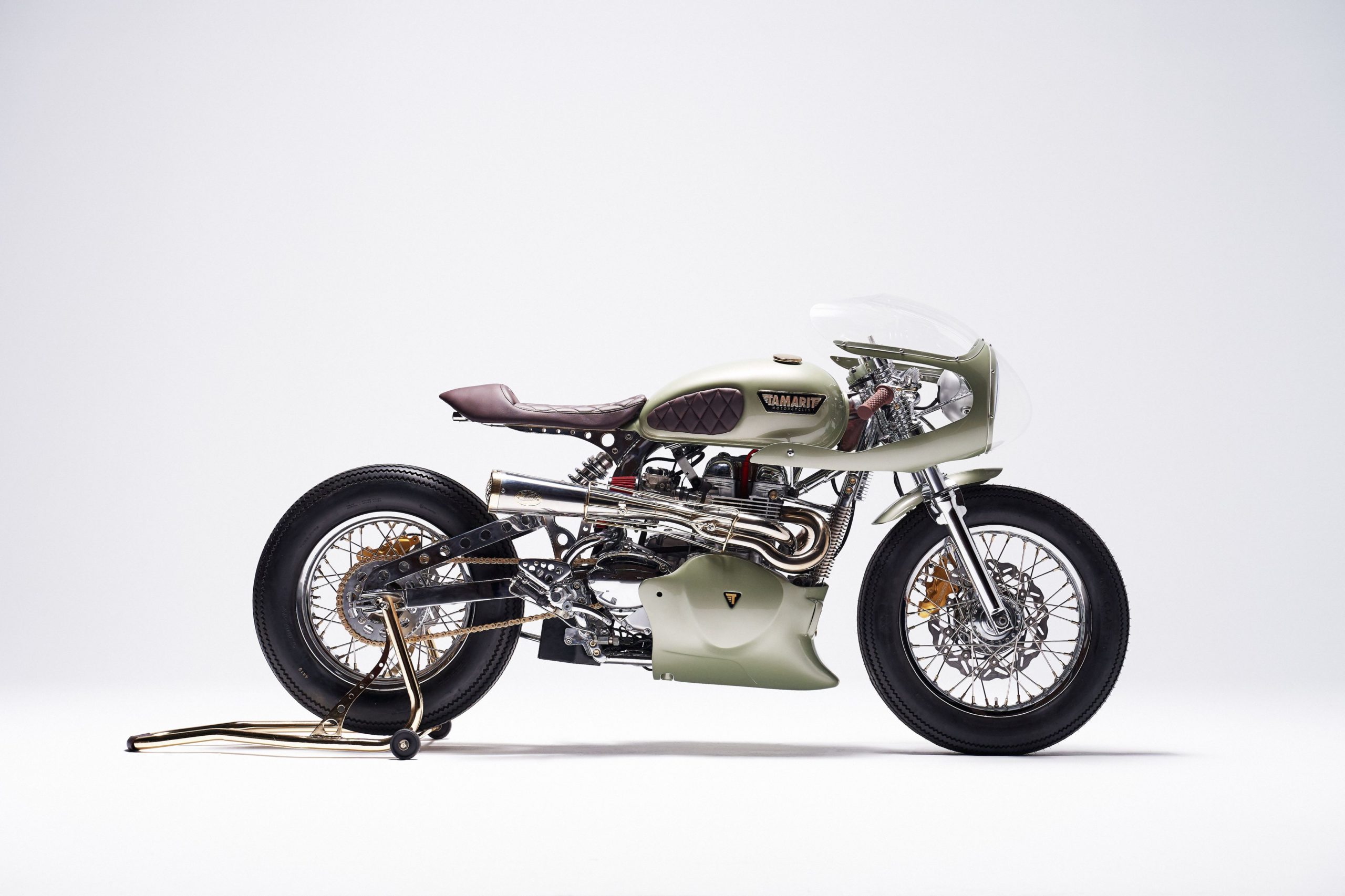 Features of ‘Jade’ include a swingarm – specially developed for Tamarit’s 100th bike – as well as a single-shock absorber (Hagon), K&N filters, Galfer discs, Beringer callipers, and a Zard exhaust.