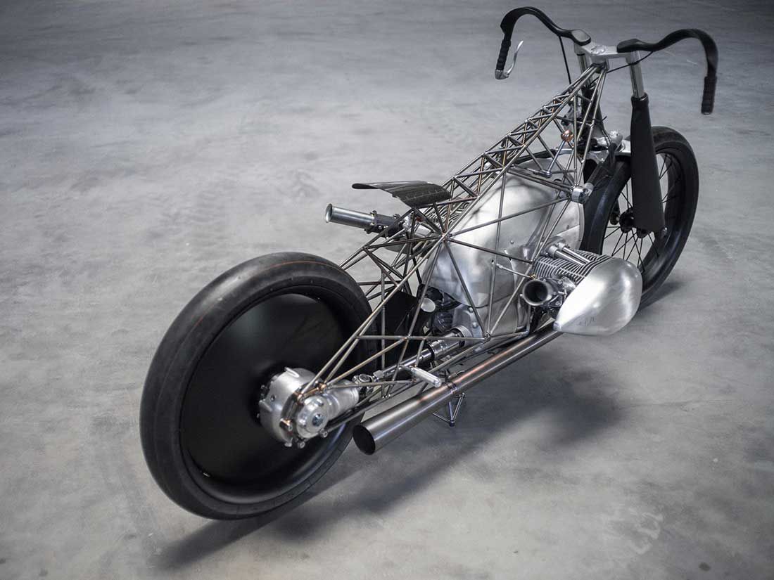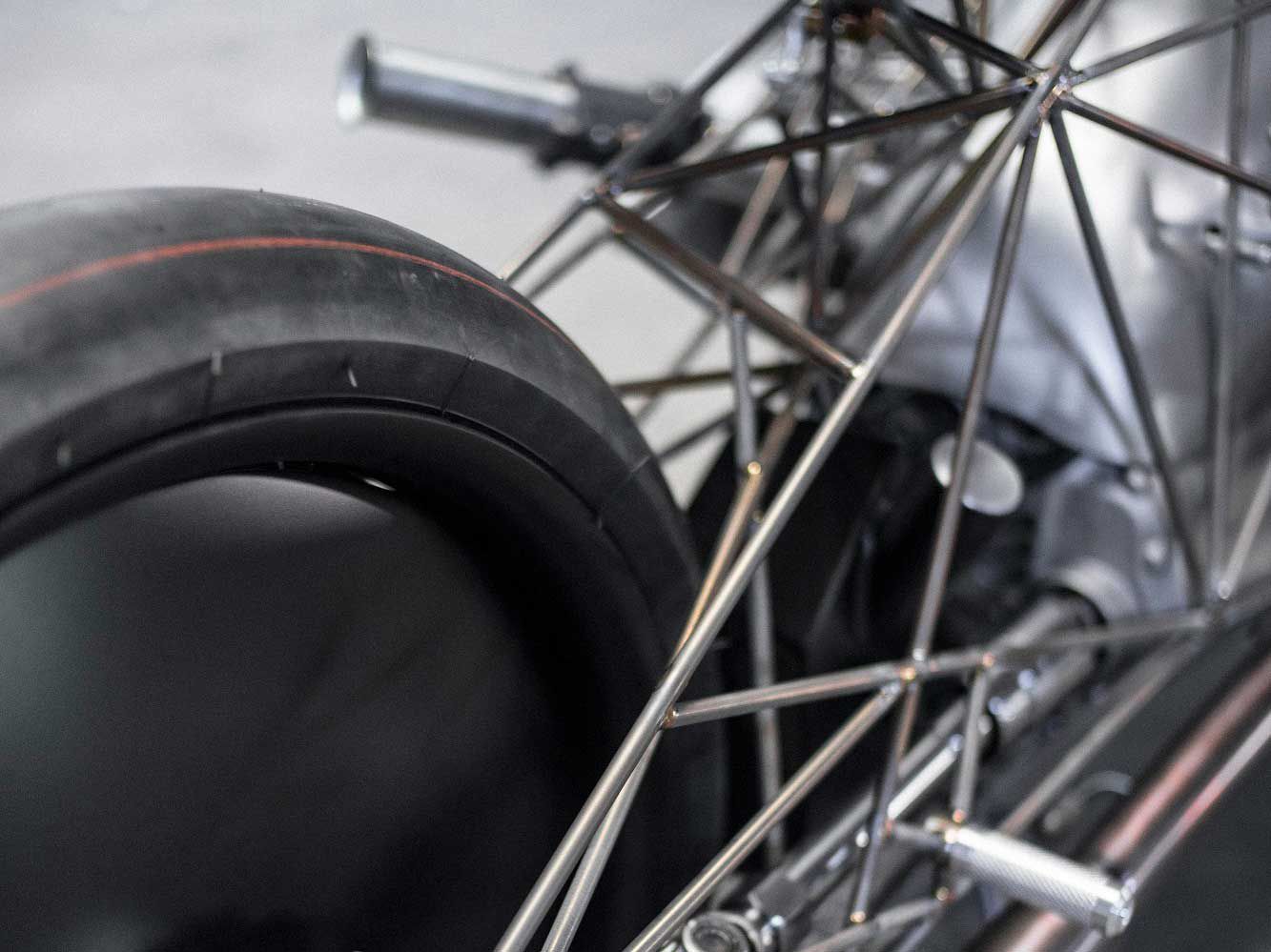 “We are pleased with the result as it accomplished the goal of being nearly transparent. We wanted to focus attention on the engine and that is precisely what we achieved with this completely unique frame we designed. You can easily view the engine and drivetrain from all angles.”