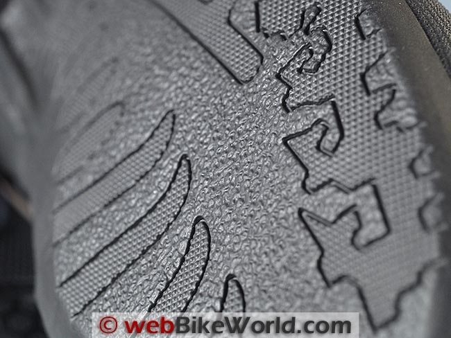 Other than “non-slip sole”, there’s not much info on the soles in the Dainese catalog. They’re about average for the type, so no problems there.