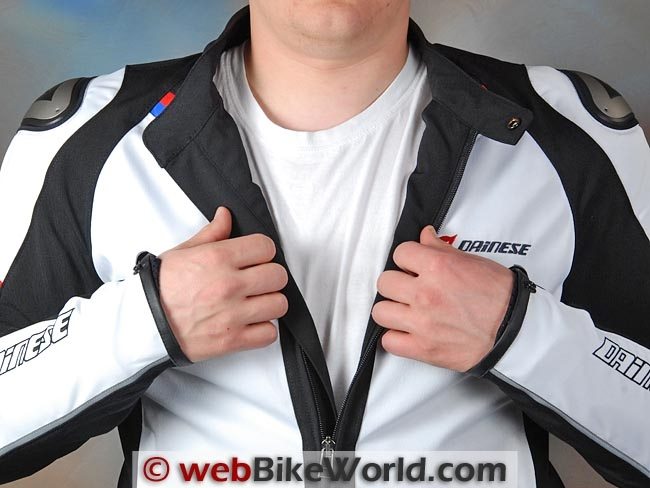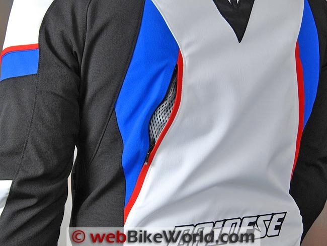 The jacket has a built-in pocket, accessible through a zipper along the inside lower hem at the rear, which will fit a Dainese G1 or G2 “Wave” back protector. The back protector is an $89.95 option and probably a good idea, as most riders will go without but a nice built-in back protector is always there when you need it.