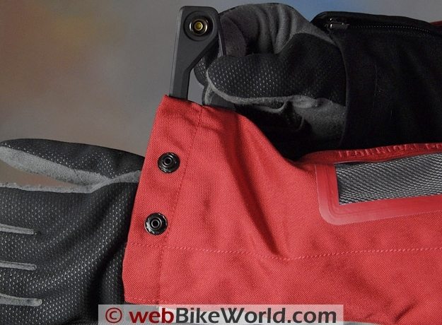 Sleeve Cuffs: The sleeve cuffs have a vertical zipper plus a two-position snap feature. The outer attachment for the snaps is slightly large and I think this makes the cuff diameter slightly larger than normal, so the sleeve cuffs can’t be cinched up as tightly as they could be if Velcro or some other system were used.