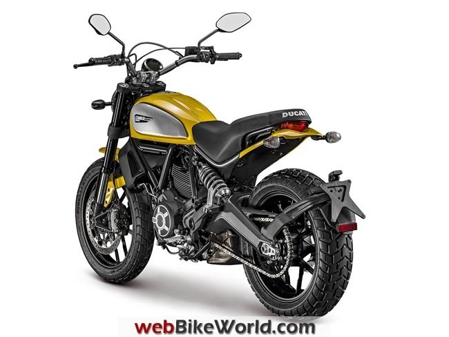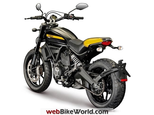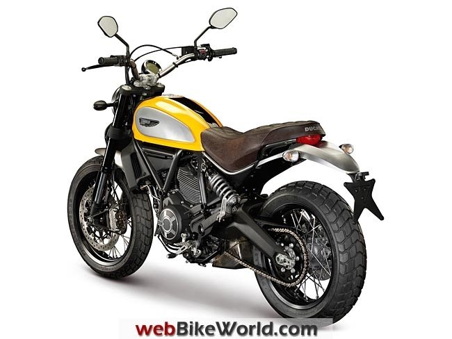 The air-cooled engine is from the Monster 796, which is actually 803 cc. Ducati claims 75 horsepower and 50 ft. lbs. of torque, probably just about right for this type of bike.